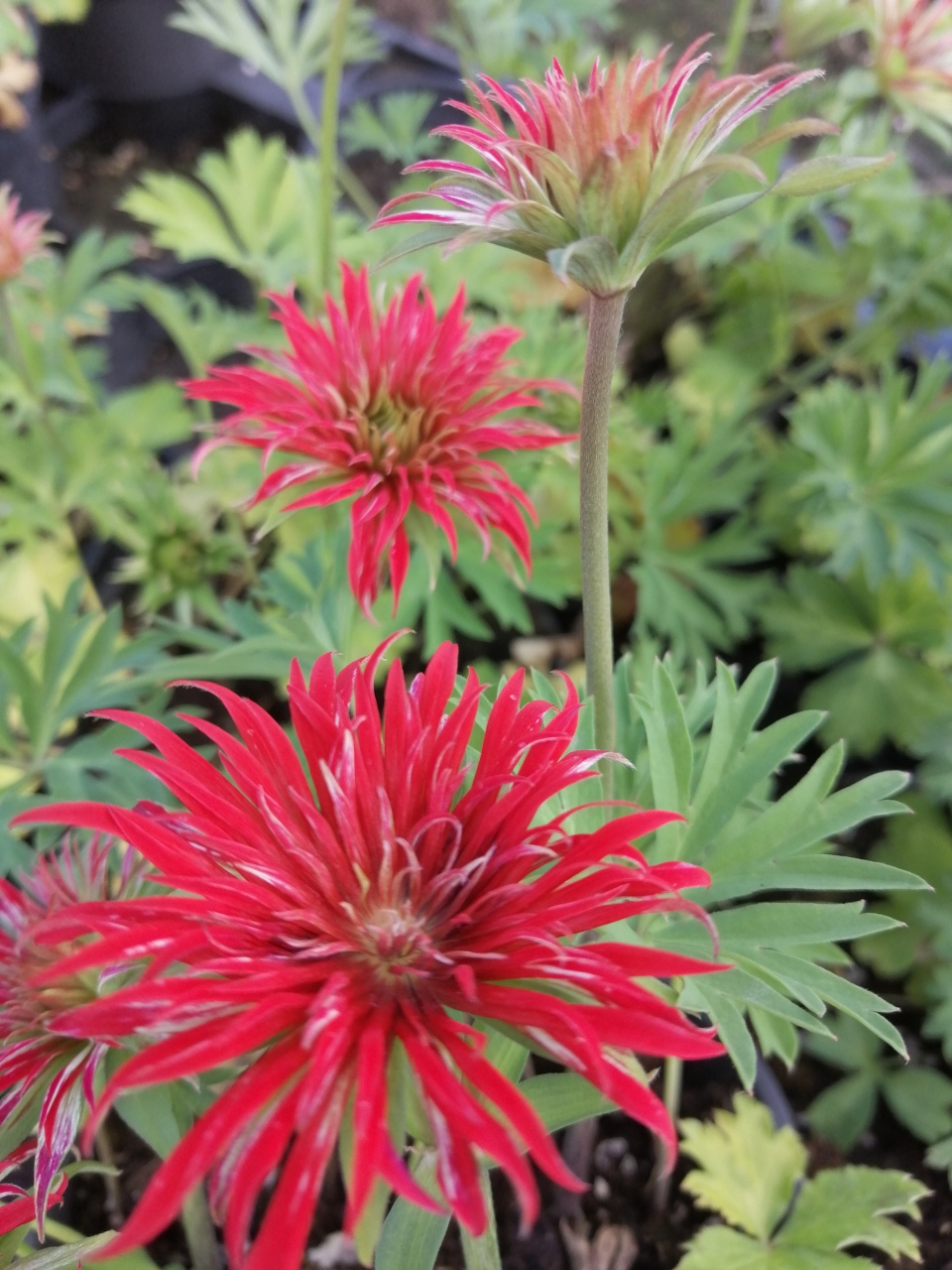 Una spettacolare, antica e rara varietà di Anemone, rustica e perenne , caratterizzata dai suoi grandi fiori stradoppi rosso vivo e brillante che sbocciano in febbraio-aprile.