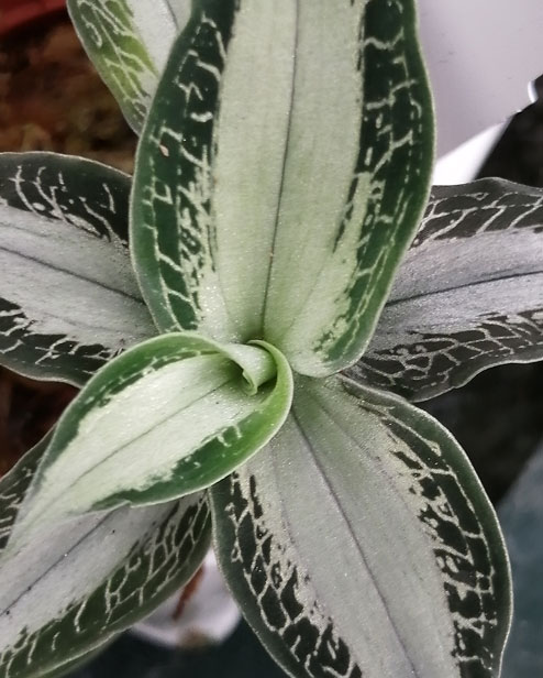 Aspidogyne argentea è chiamata anche orchidea gioiello per la bellezza del suo fogliame carnoso, verde acceso venato di bianco argenteo iridescente. E’ una pianta davvero affascinante, originaria delle foreste del Sud Est Asiatico, dal Vietnam alle Filippine.