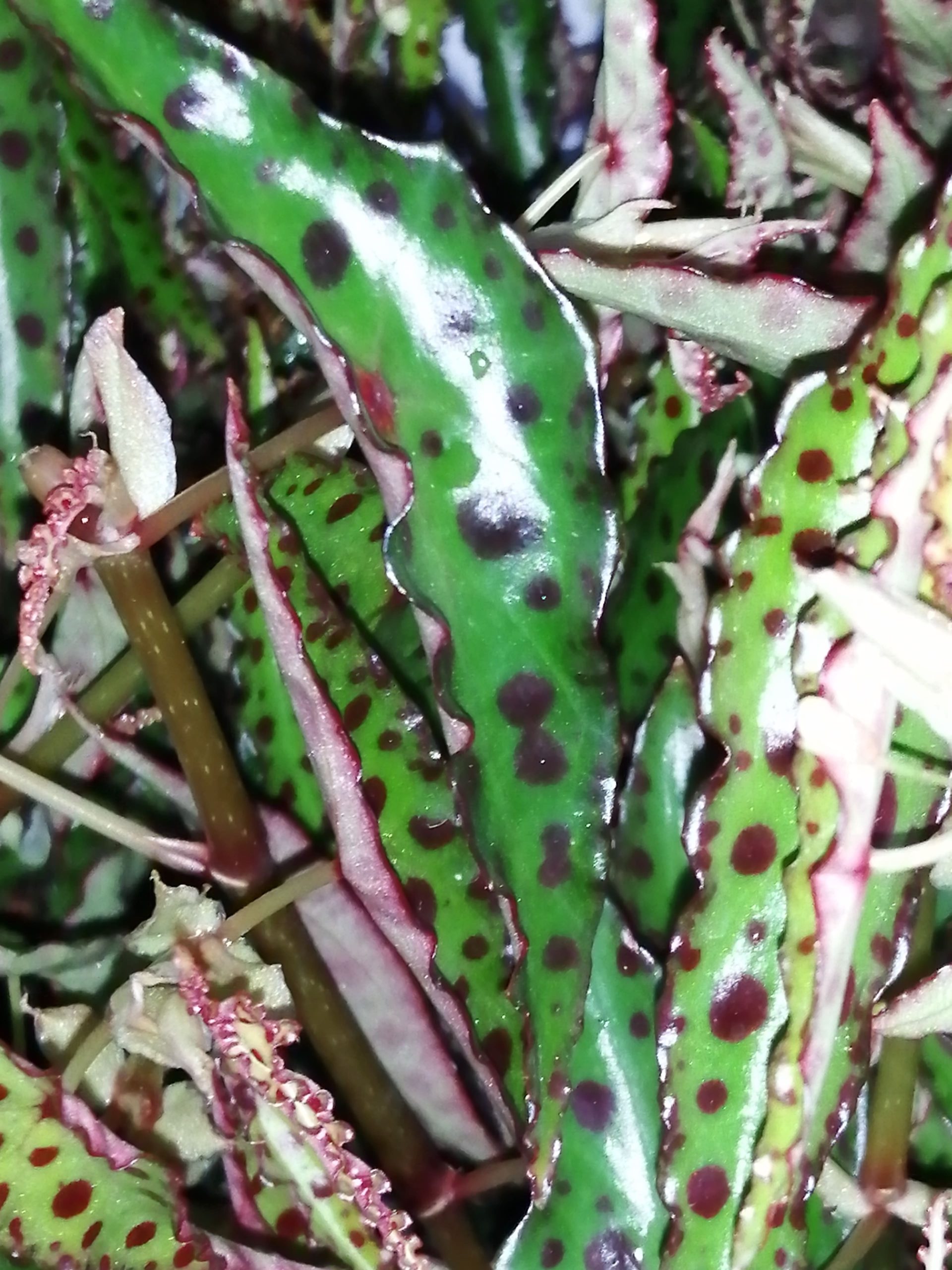 Begonia amphioxus Butterfly ha aspetto decisamente incantevole, con le sue foglie peltate, allungate, verde mela con macchie rosa scuro.