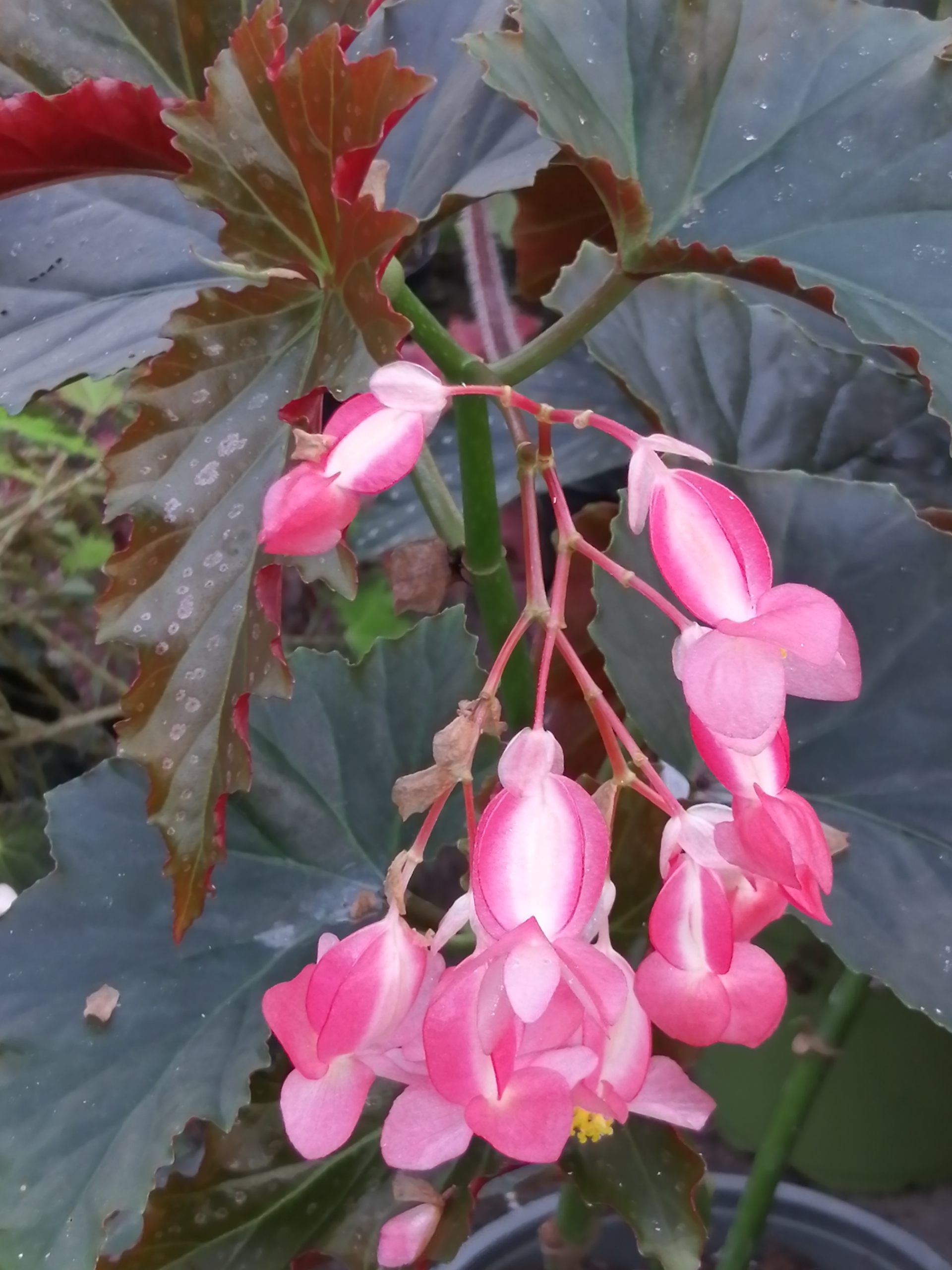 Begonia a cespuglio di grande bellezza per il suo particolarissimo fogliame bronzo scurissimo  quasi nero. Esso crea un contrasto perfetto ed incredibile con i suoi fiori piccoli ma raccolti in corti mazzetti, rosa intenso e brillante.