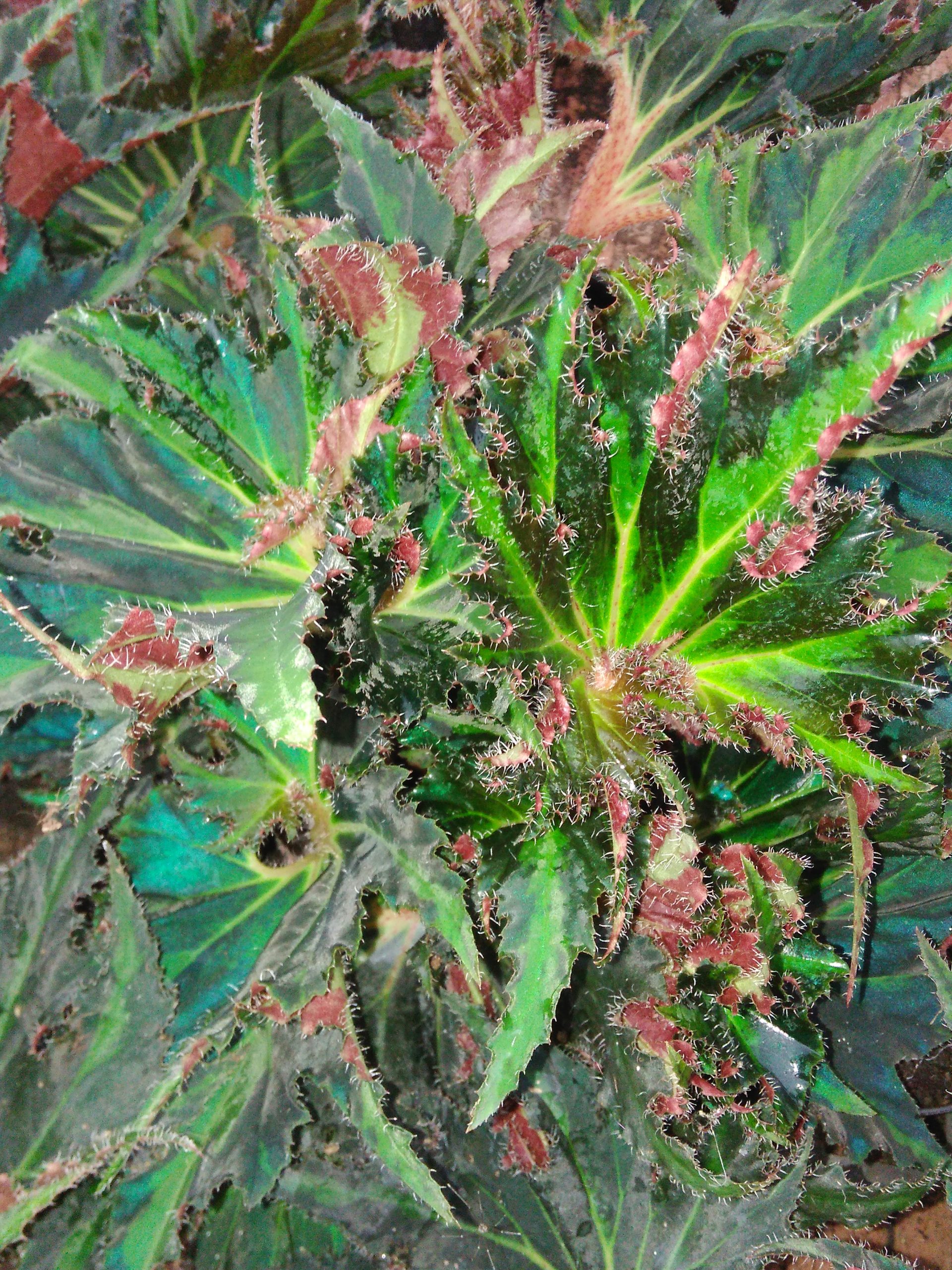 Una recente varietà dalle foglie grandi, spettacolari, vellutate, setose, cangianti, verde bronzo scuro, quasi nere con riflessi verde smeraldo. I margini sono sfrangiati e nelle foglie più vecchie scendono verso il basso arricciandosi.