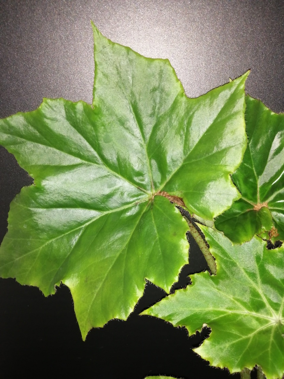 E’ una rizomatosa a grandi foglie profondamente lobate, color verde mela, lucide, portate su lunghi steli.