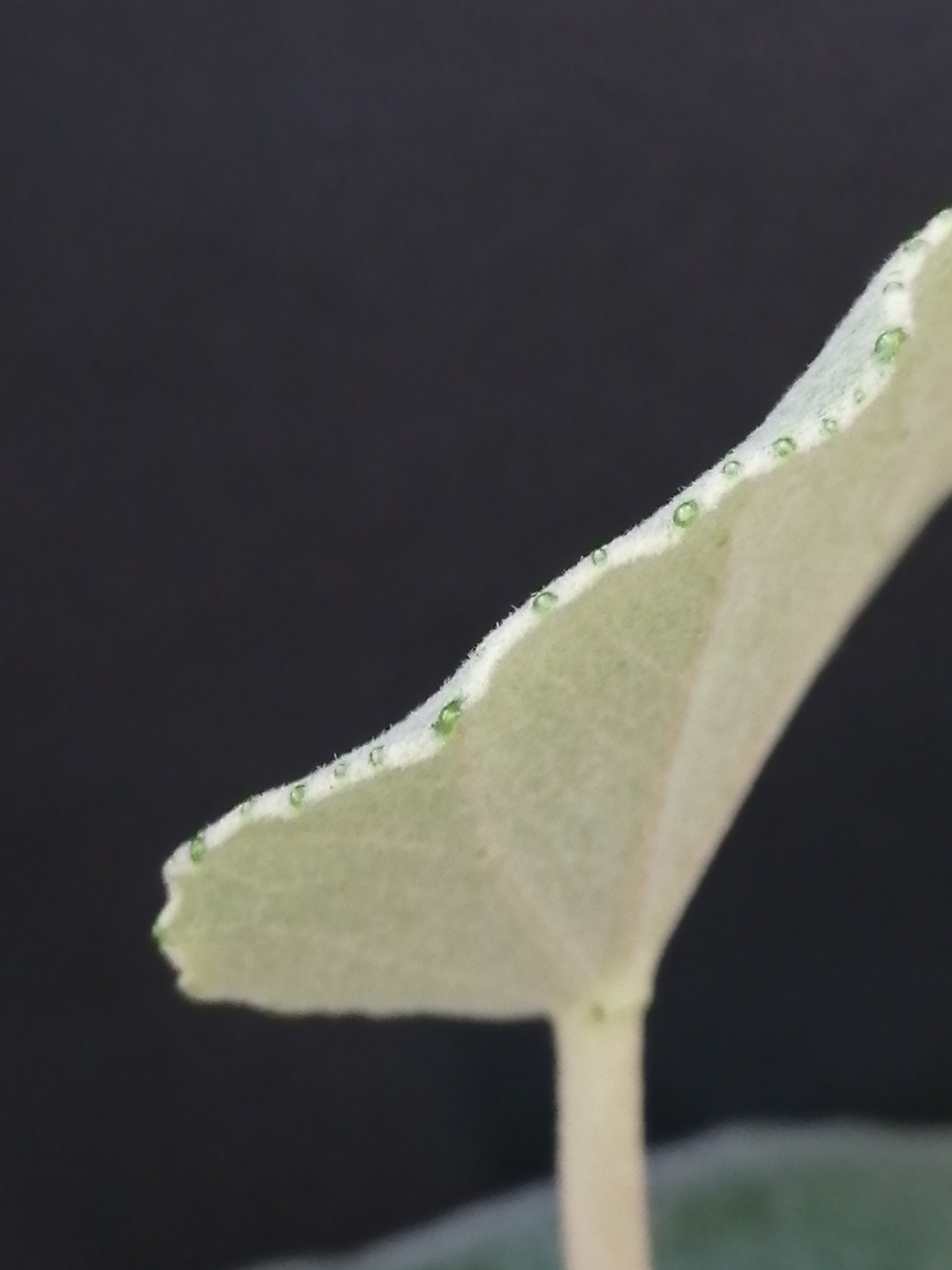 Ha foglie medie, intere, tondeggianti, verde chiaro con marginatura nera. I fiori dalla fine dell’inverno all’inizio dell’estate, sono rosa.