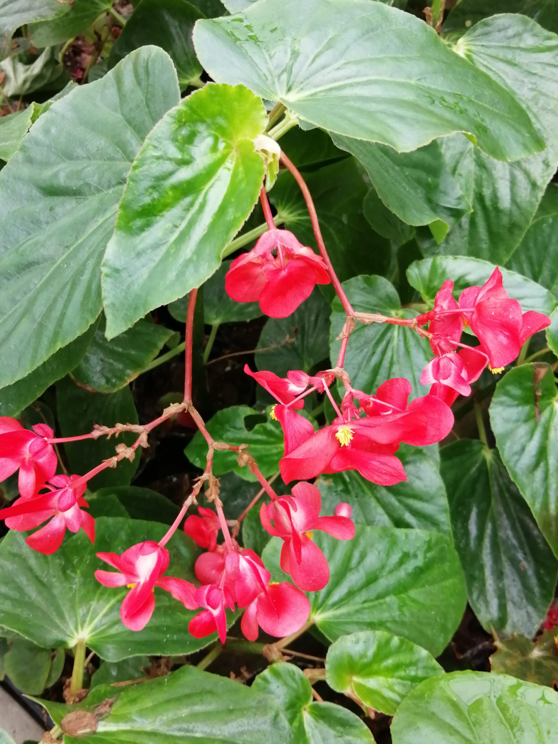 I suoi rami leggermente curvi sorreggono foglie verde intenso, lucide e grappoli di fiori rosso brillante.