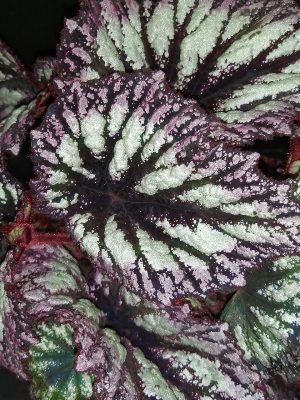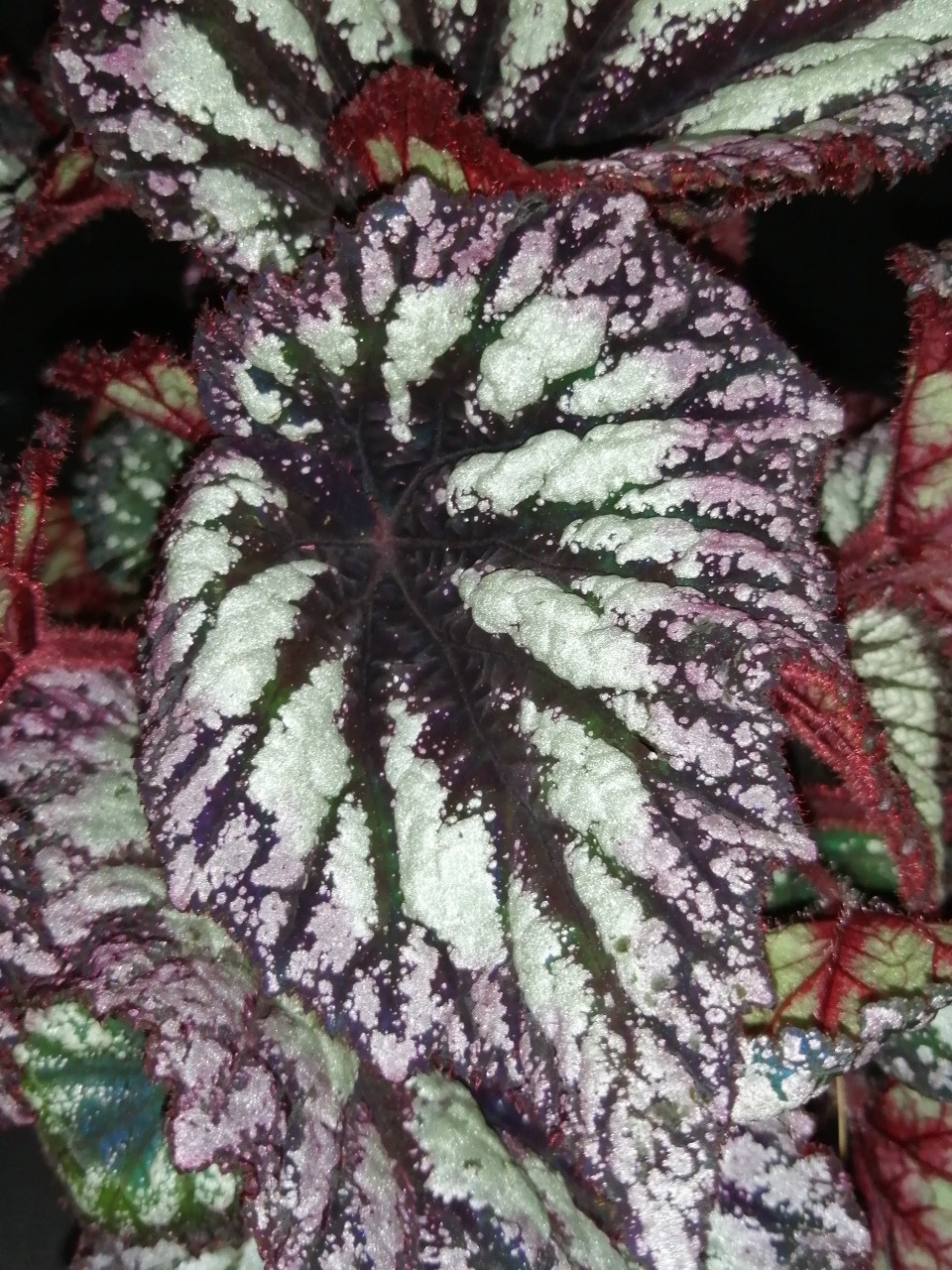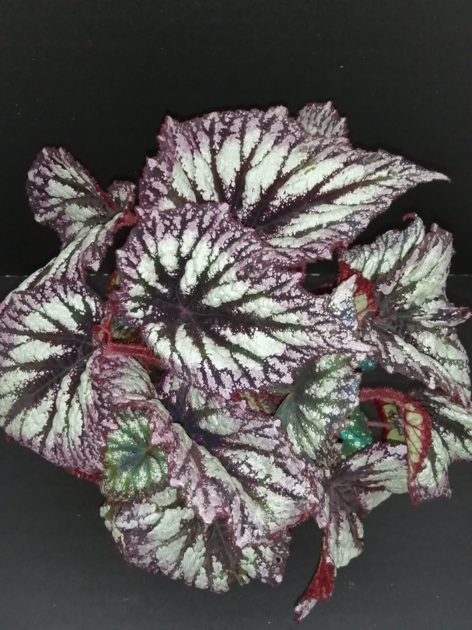 Begonia del gruppo Rex cultorum, vincitrice di numerosi premi (Merito della RHS ) per la sua sontuosa bellezza. Ha grandi foglie argento polvere, macchiate lungo le venature di rosso cupo e con i bordi soffusi di rosa. Davvero uno spettacolo!