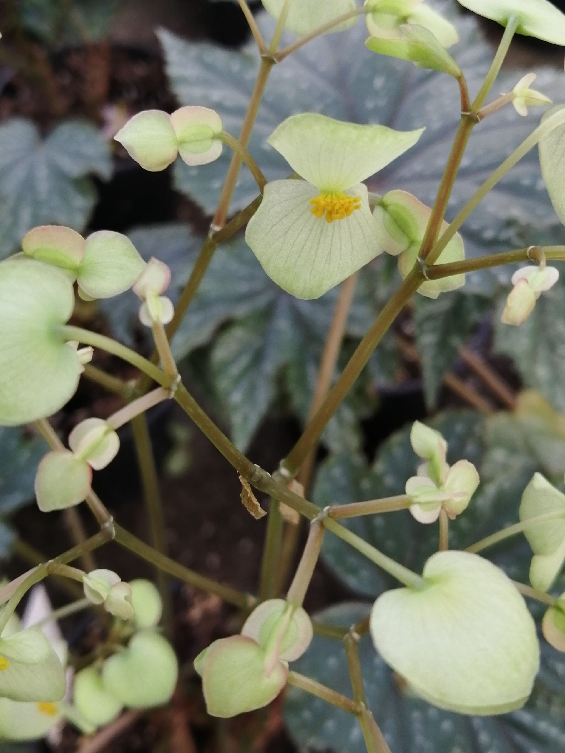 ha un fogliame molto bello, palmato, verde scuro macchiato di grigio argento. Il portamento è eretto.