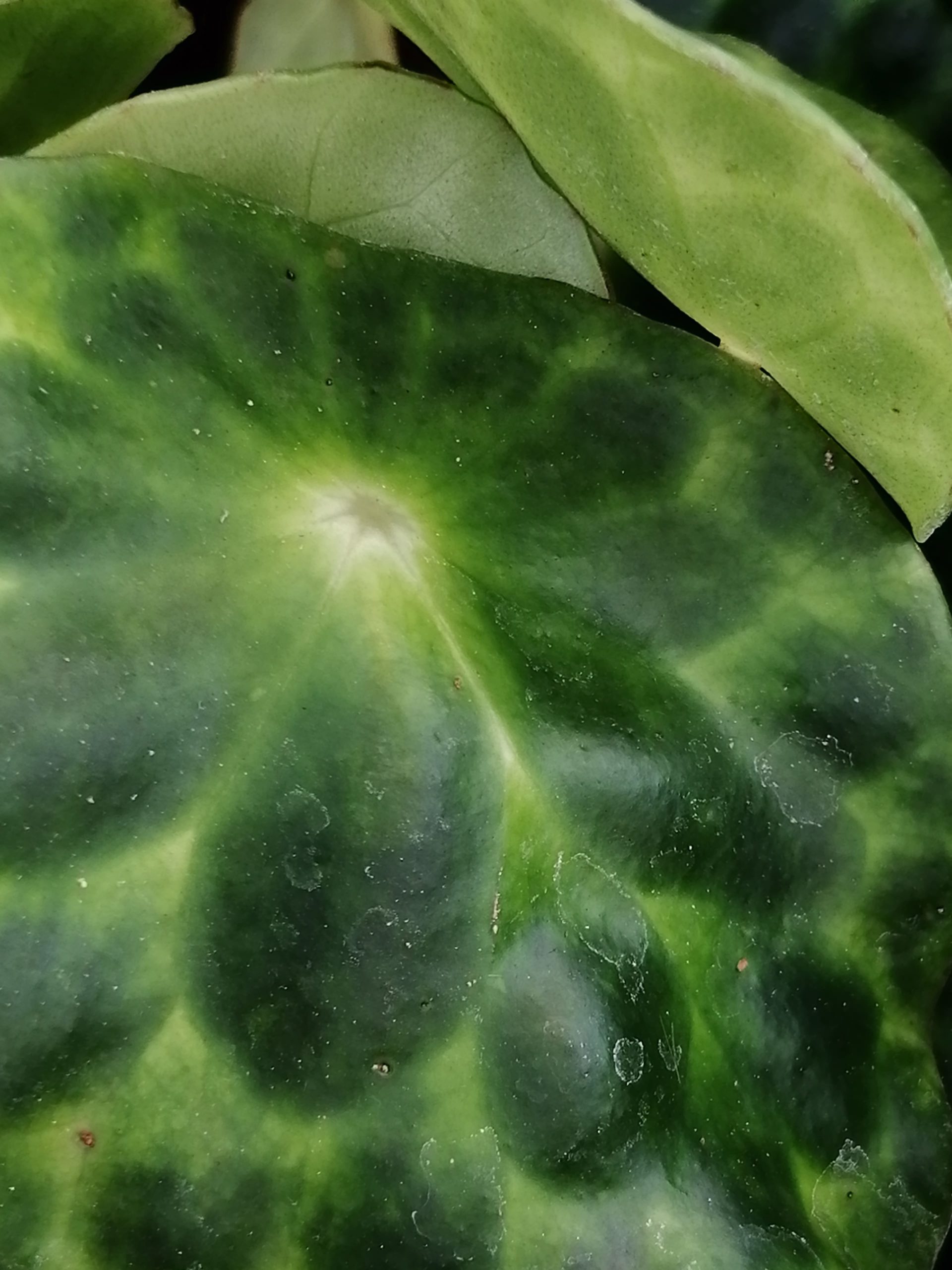 Ha un particolare fogliame carnoso e sfumato di verde scuro e chiaro. I fiori portati sopra le foglie, sono bianco albicocca.