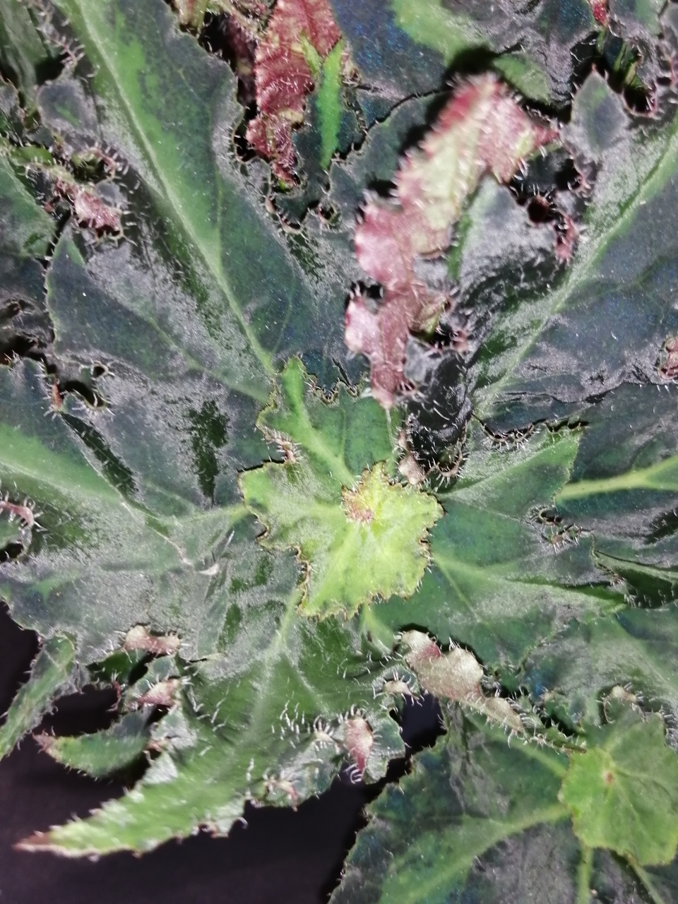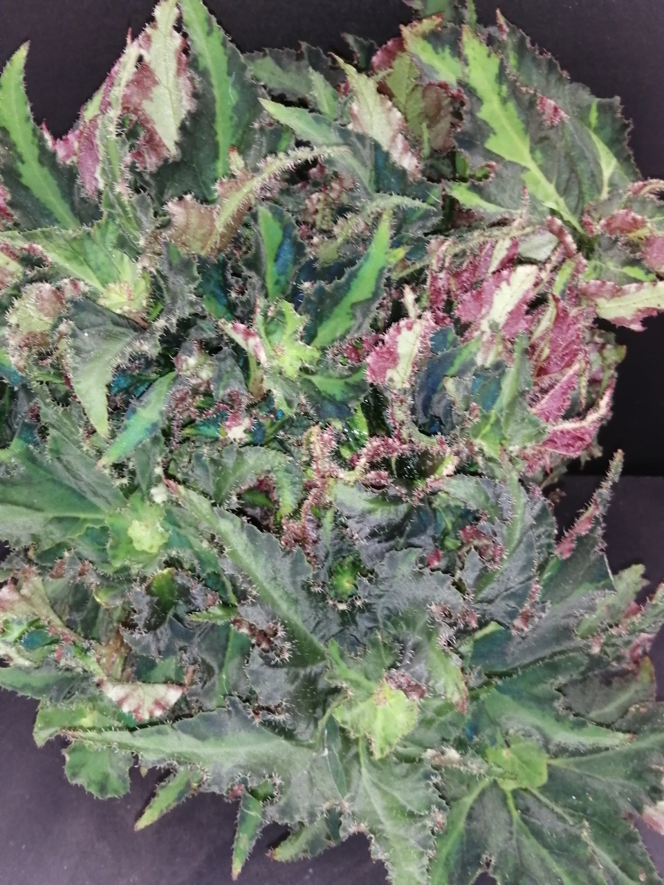 Di facile coltivazione, questa begonia rizomatosa richiede luce diffusa e terriccio ben drenante.  Le foglie sono medio grandi, a stella, profondamente incise, verde scuro con variegatura centrale verde lime. i fiori sono rosati.