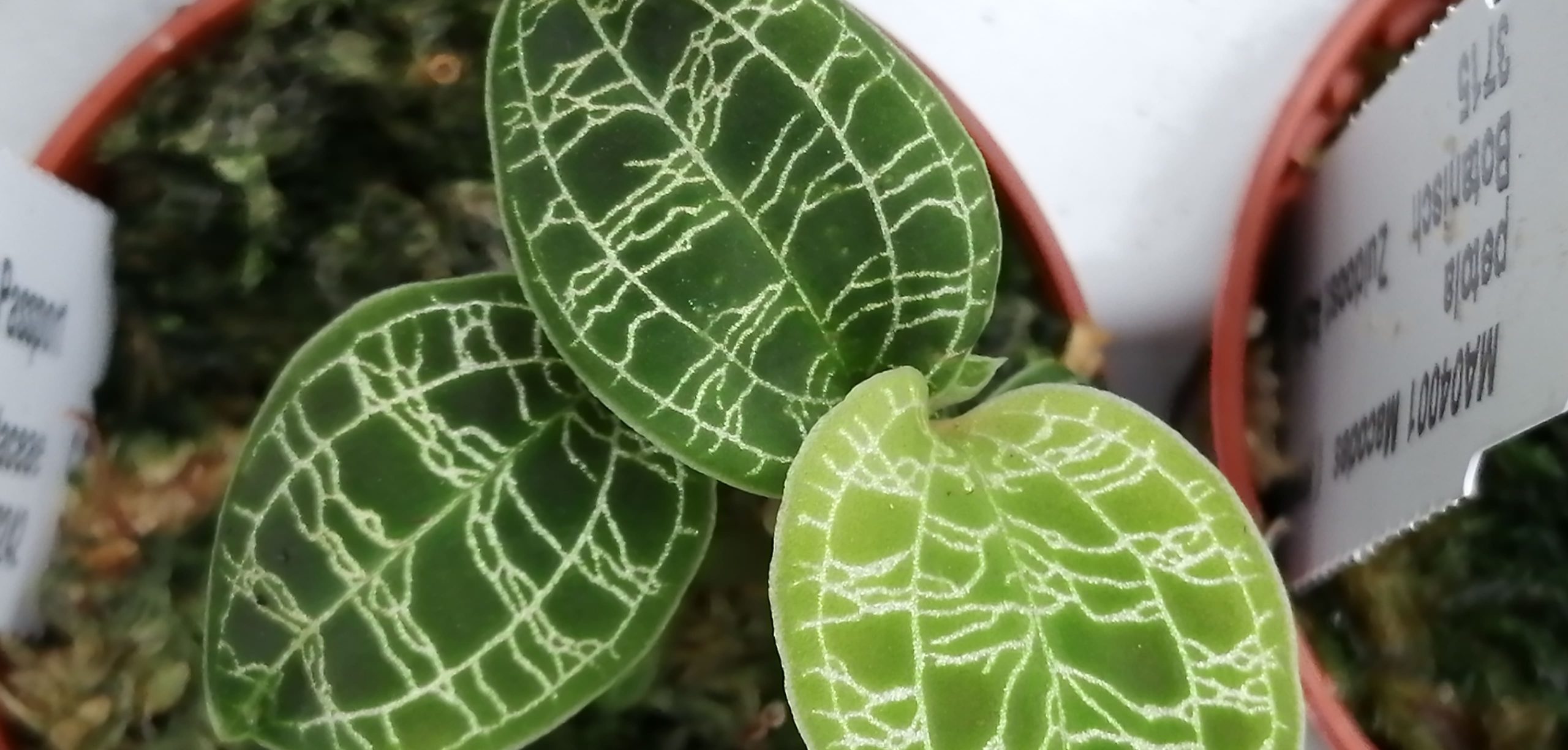 Ha foglie allungate, porpora quasi nero con vistose macchie bianco rosate, molto evidenti.
