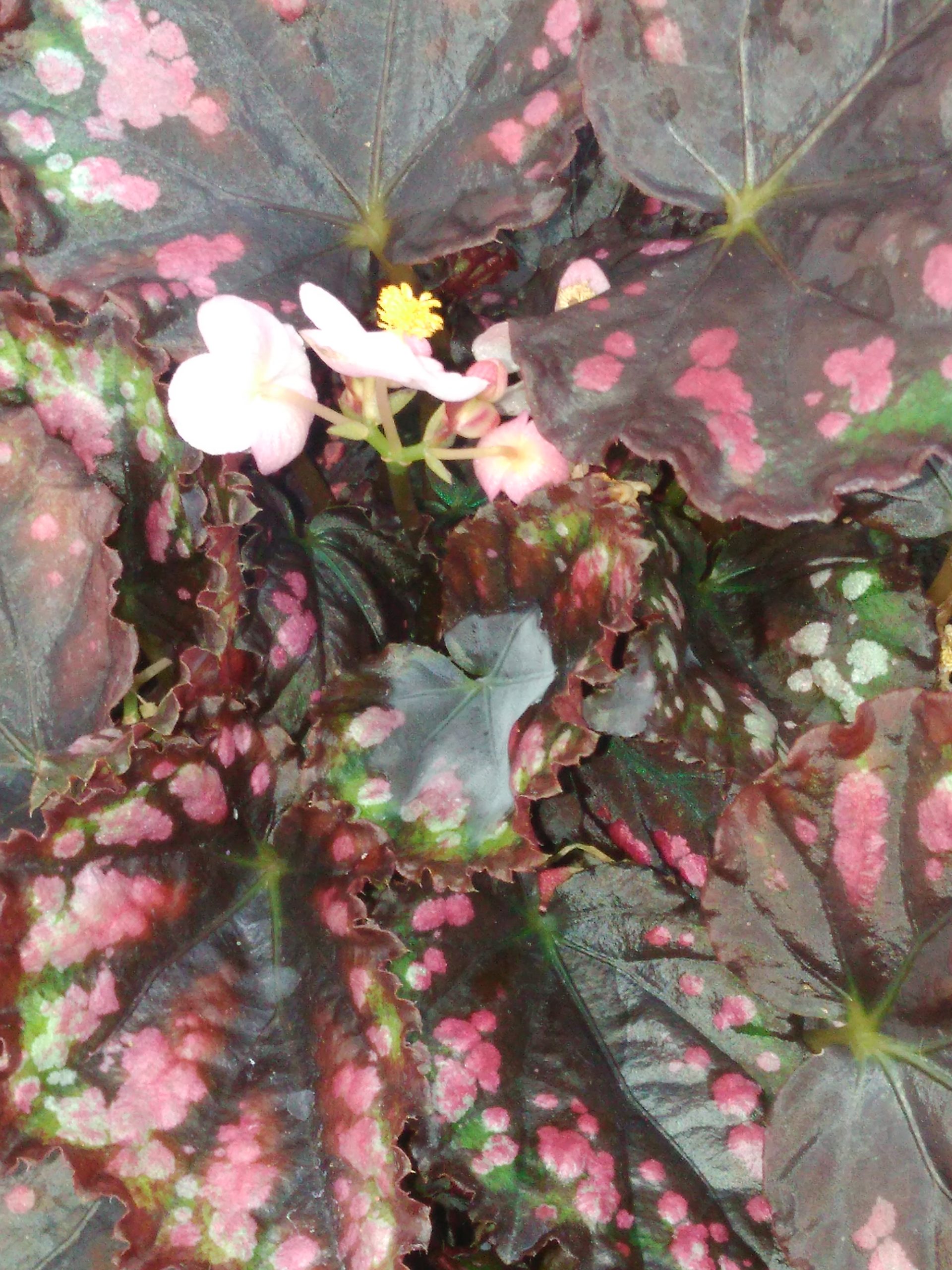 begonia Mahori Haze Una nuova varietà di Begonia rex a portamento compatto. Foglie di medie dimensioni, argentee con parte centrale soffusa di rosa fucsia più o meno intenso a seconda della quantità di luce che la pianta riceve. Molto resistente.