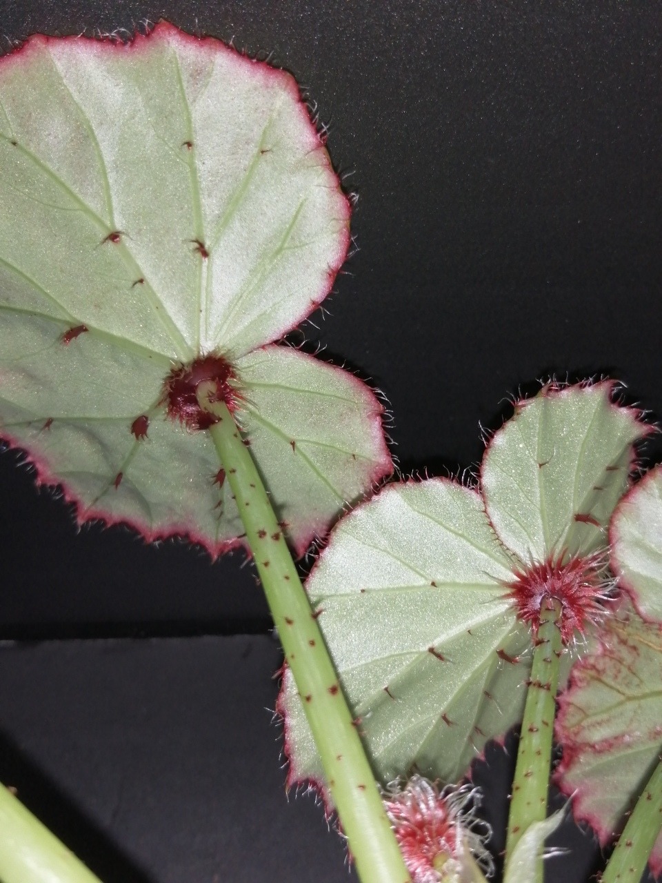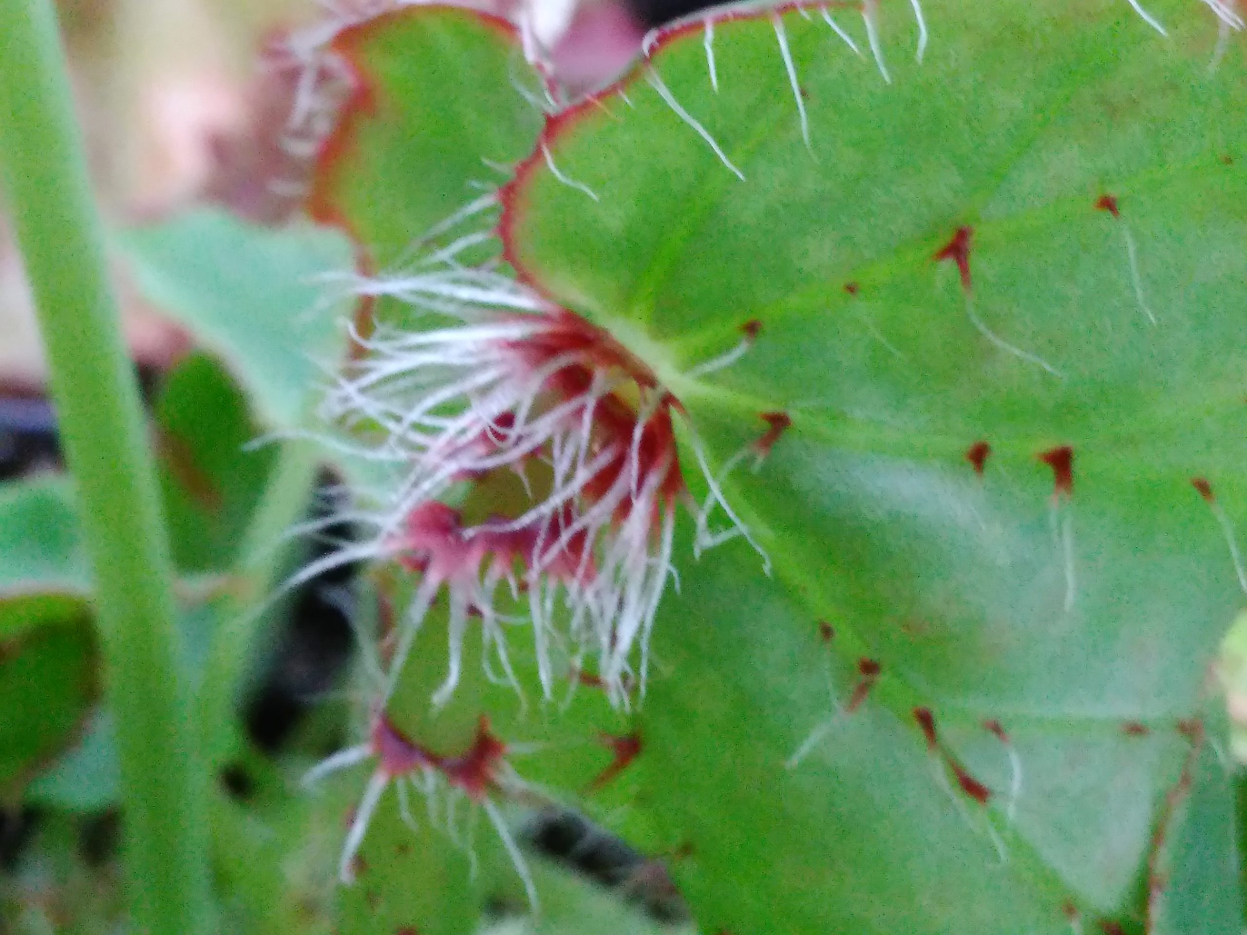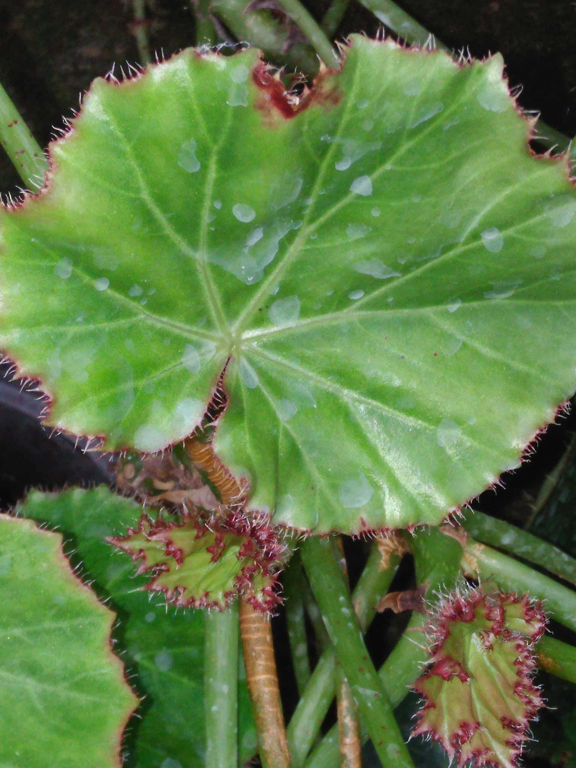 Rizomatosa messicana, scoperta nel 1842. Le foglie sono grandi, tondeggianti con i margini seghettati e ciliati, lucide. Il colore è verde chiaro. Nella pagina inferiore si notano i caratteristici ‘manicotti’ rosso vermiglio. I fiori rosa sbocciano in primavera, portati alti sopra le foglie.