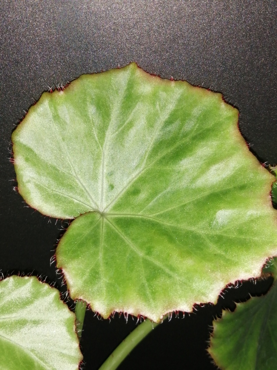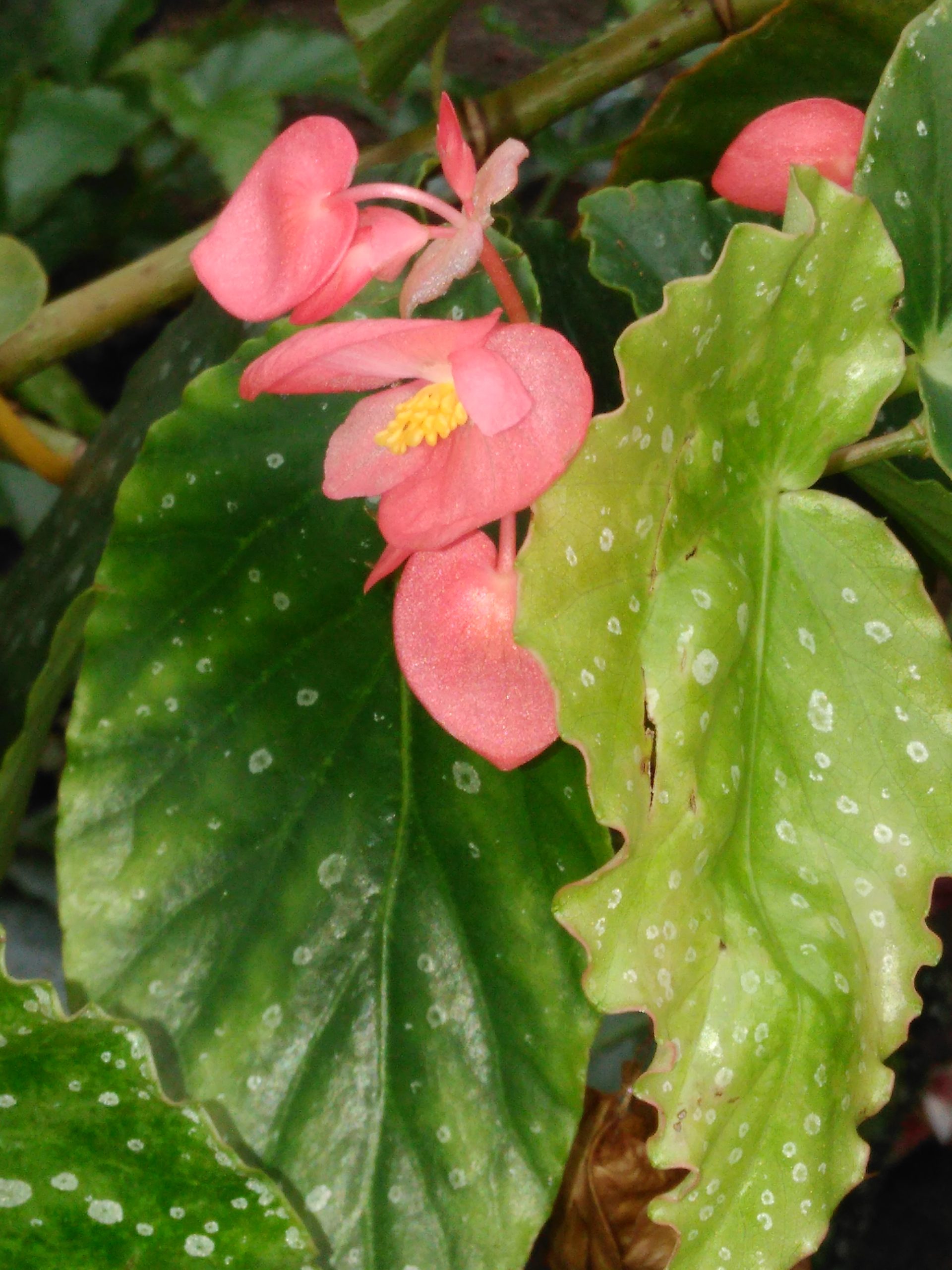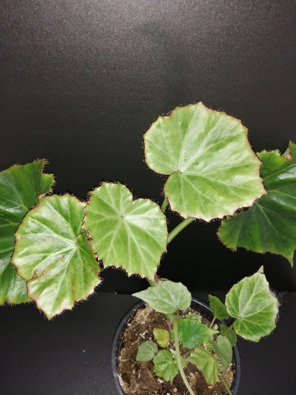 Rizomatosa messicana, scoperta nel 1842. Le foglie sono grandi, tondeggianti con i margini seghettati e ciliati, lucide. Il colore è verde chiaro. Nella pagina inferiore si notano i caratteristici ‘manicotti’ rosso vermiglio. I fiori rosa sbocciano in primavera, portati alti sopra le foglie.
