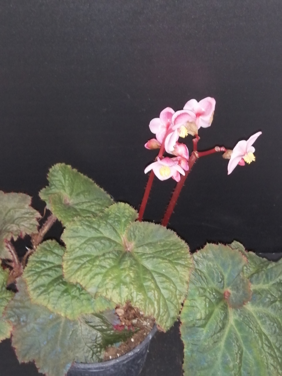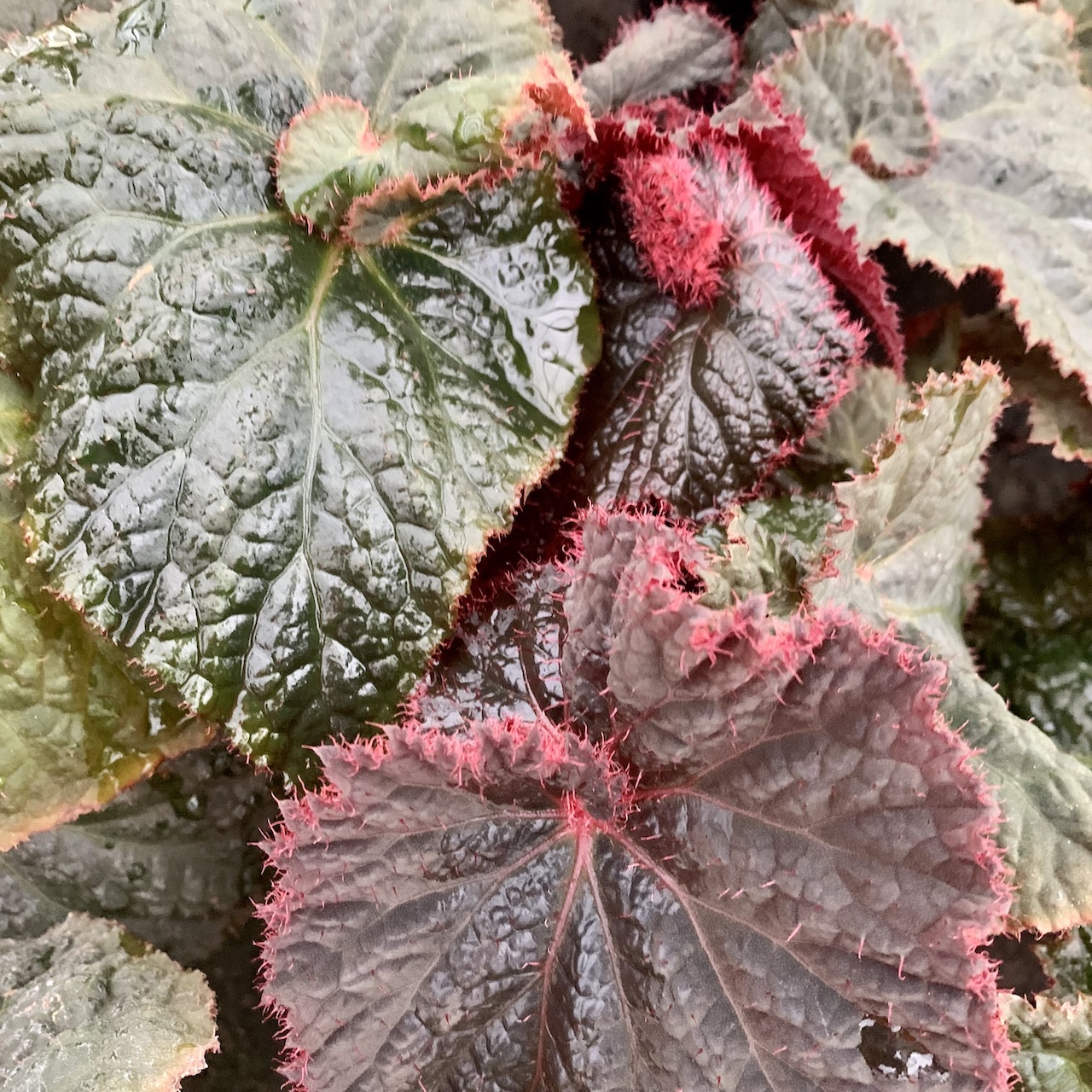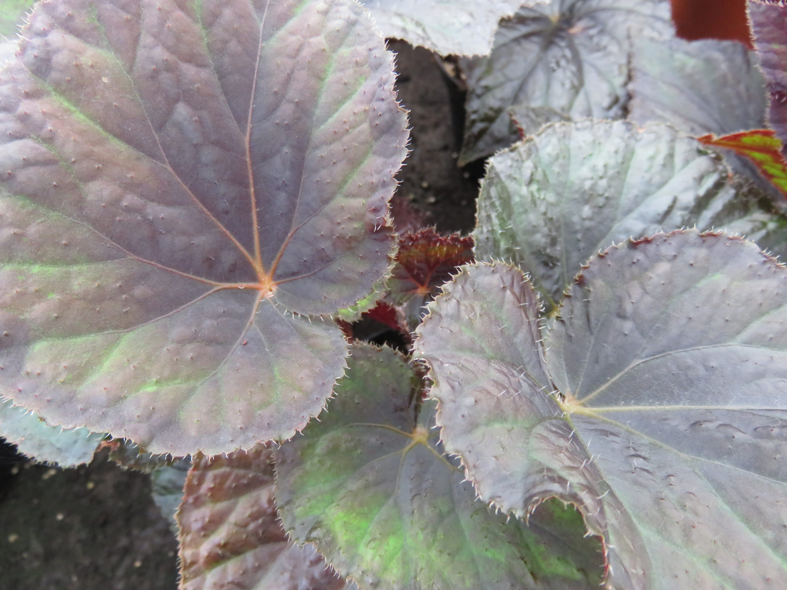 Rex cultorum di grandi dimensioni. Foglie intere, vellutate, Rosso mogano scurissimo, quasi nero. Di grande effetto.