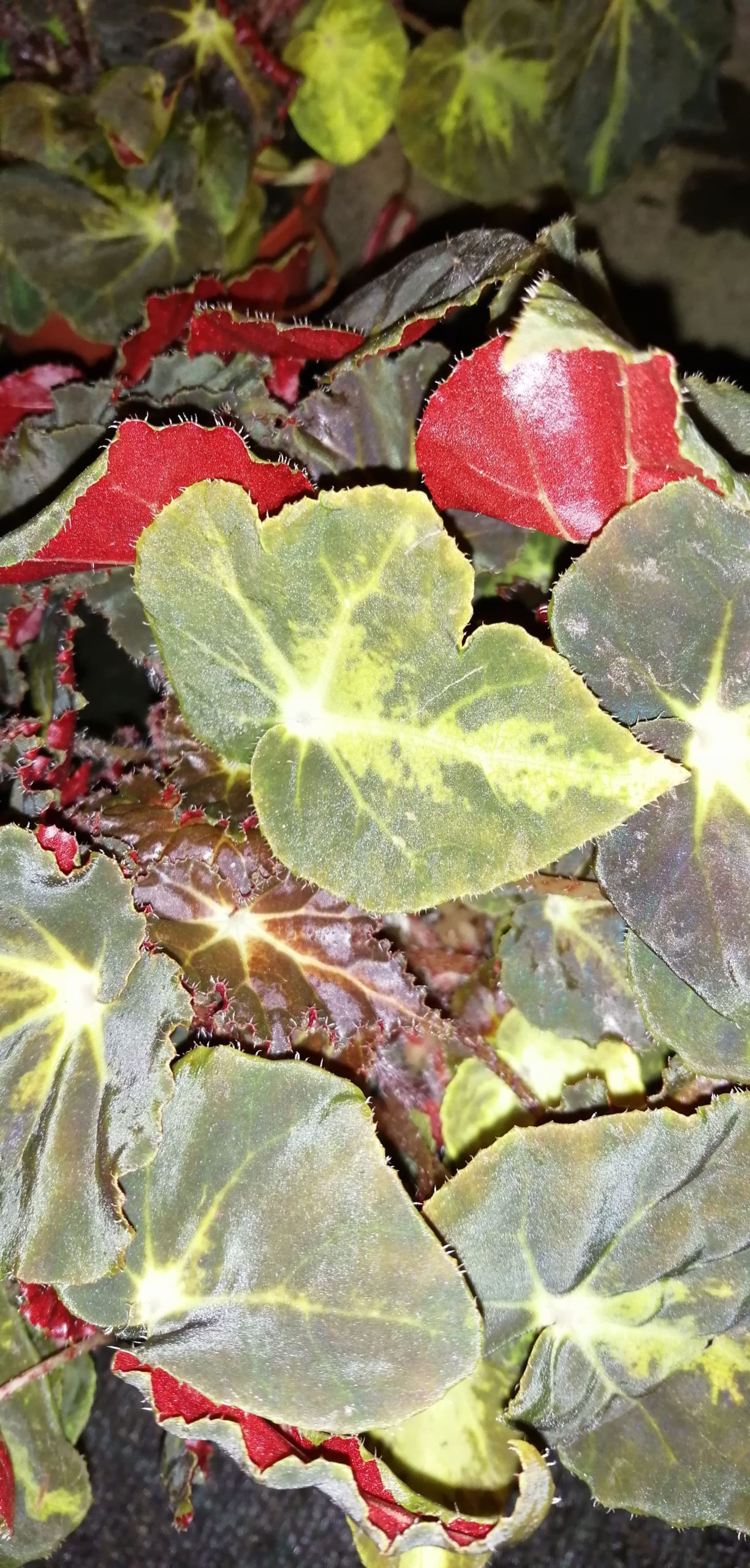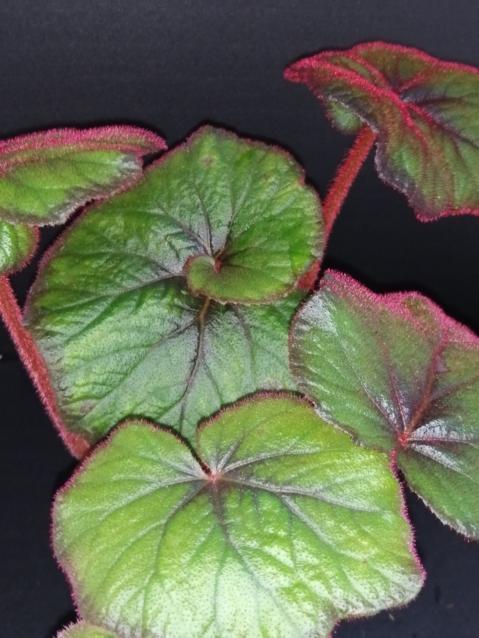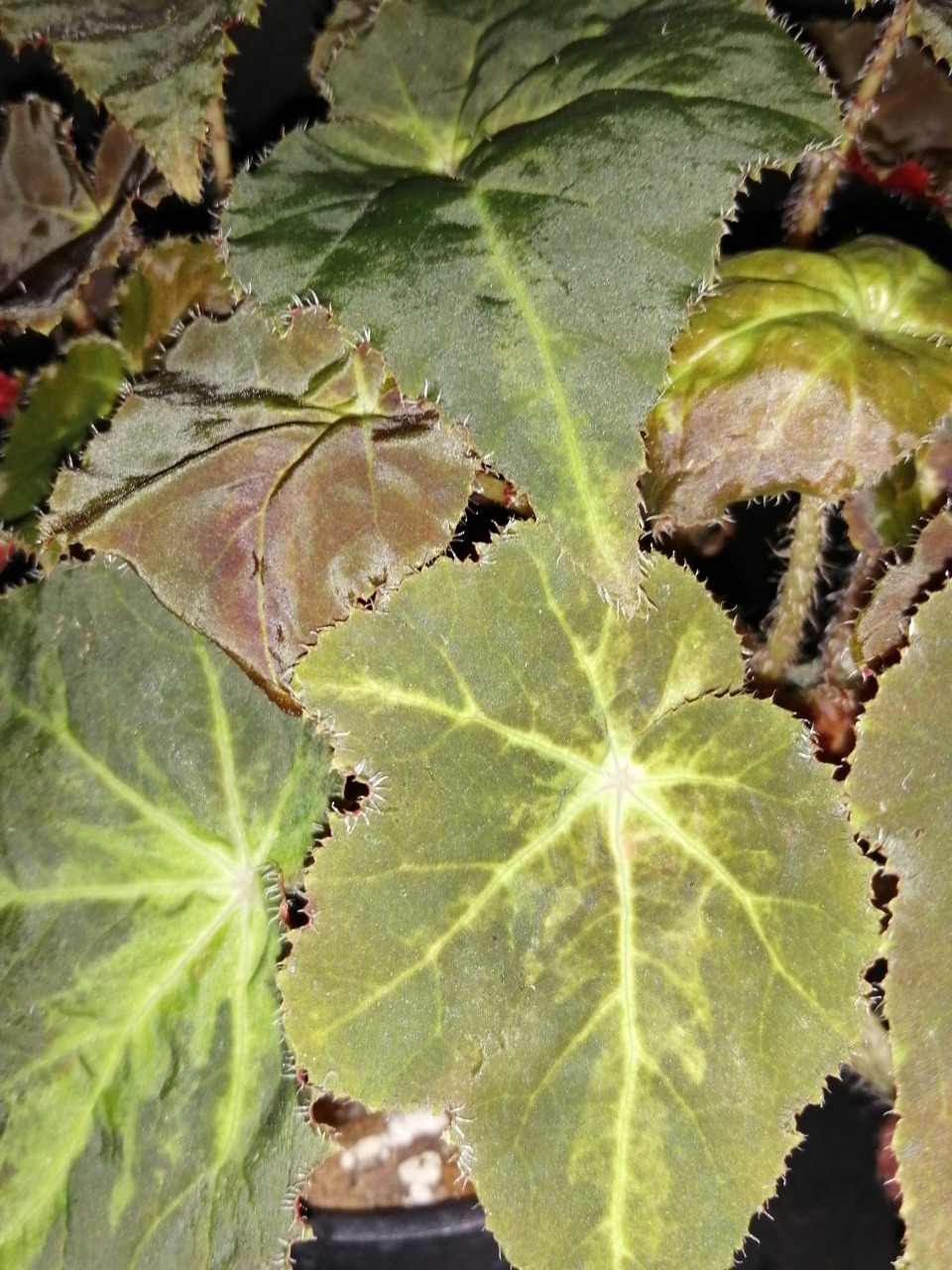 E’ una nuovissima varietà di Begonia da interno, rizomatosa, dalle belle foglie vellutate verde oliva con striatura centrale giallo ocra. il retro del fogliame è rosso intenso.