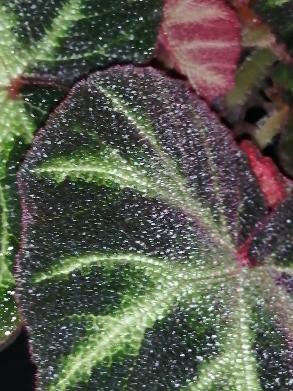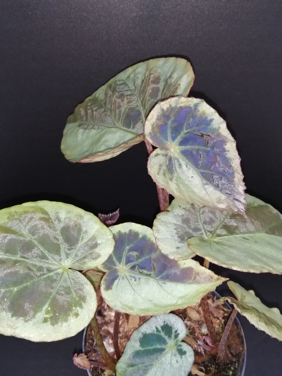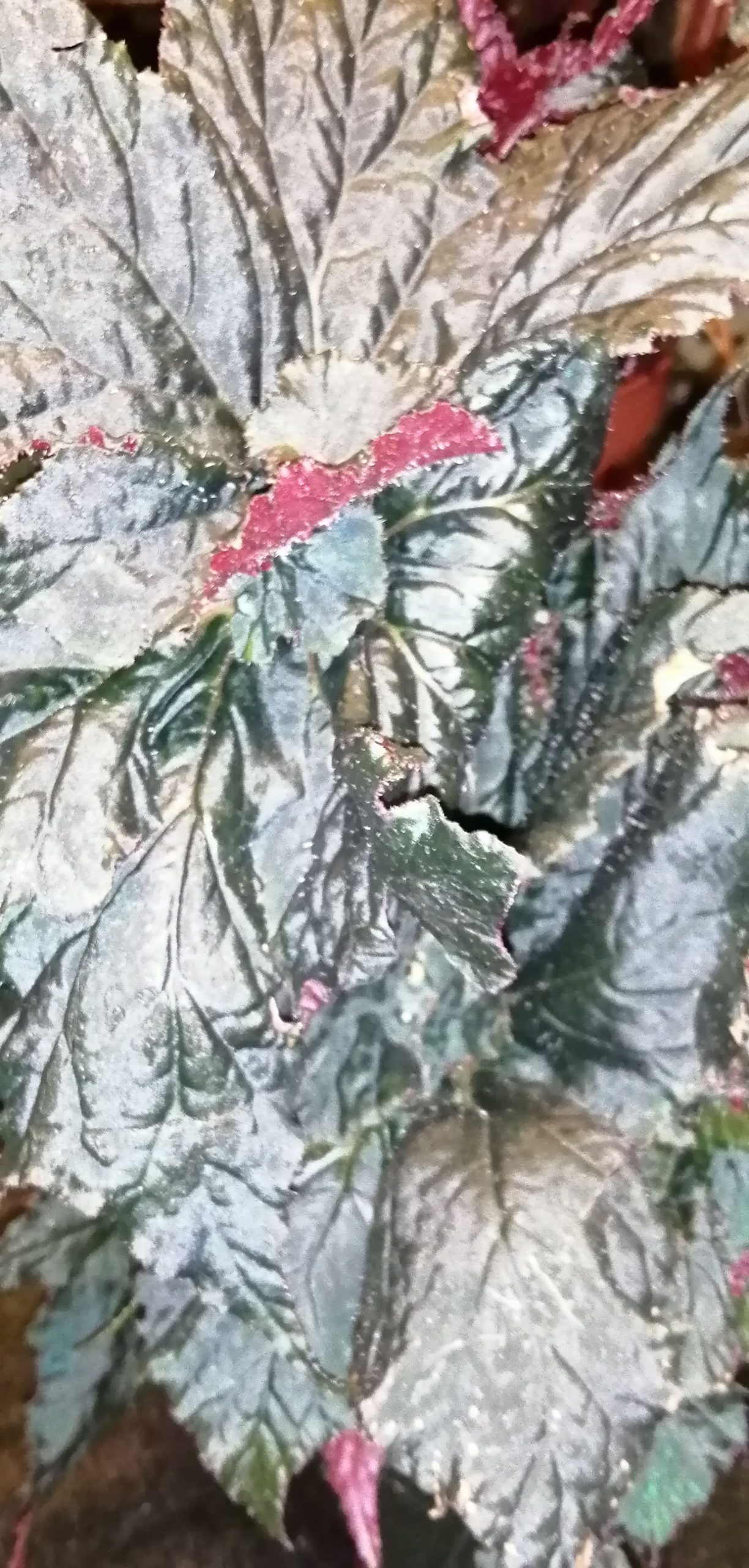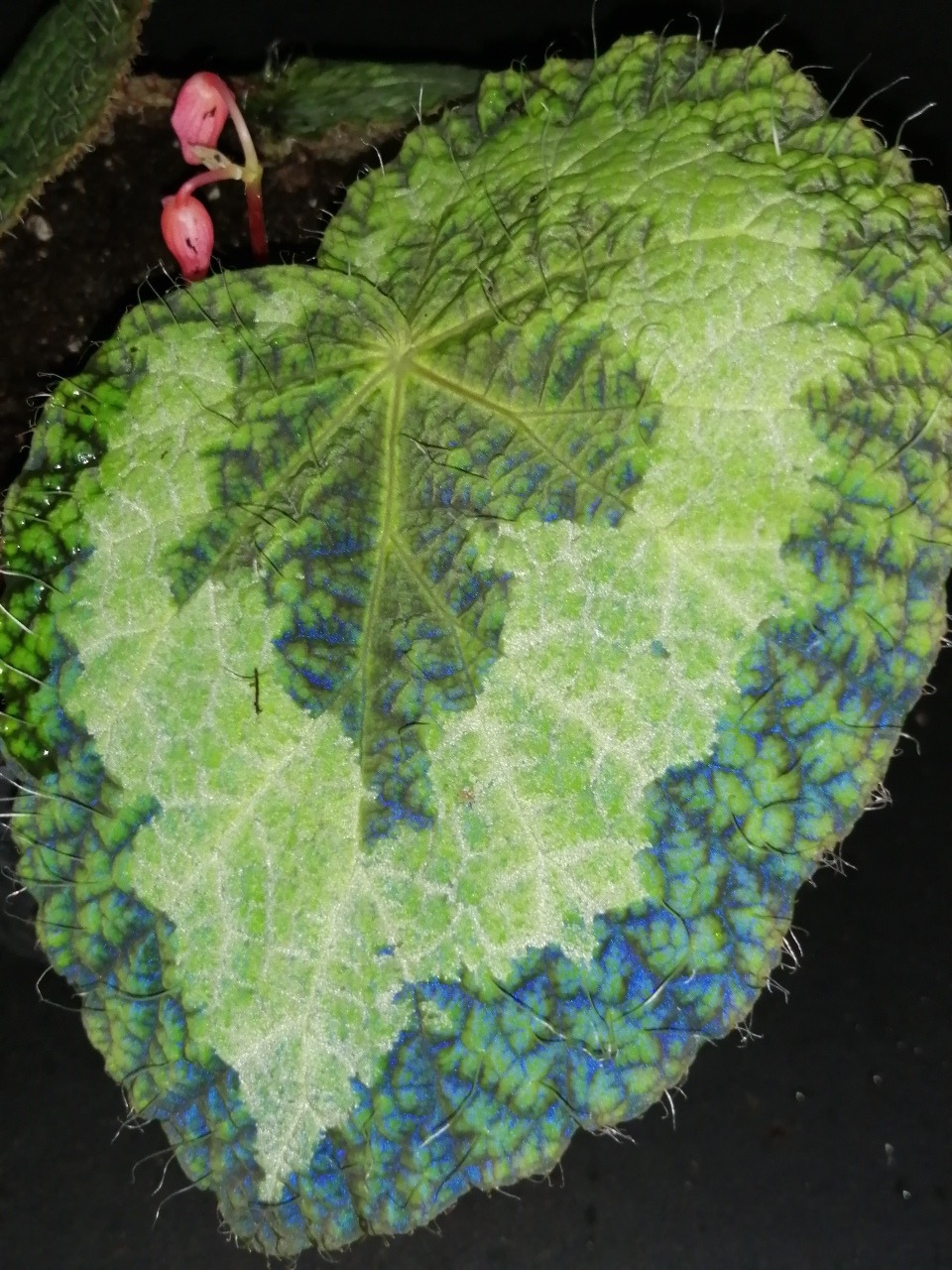 E’ una nuovissima varietà di Begonia da interno, rizomatosa, dalle belle foglie vellutate verde oliva con striatura centrale giallo ocra. il retro del fogliame è rosso intenso.