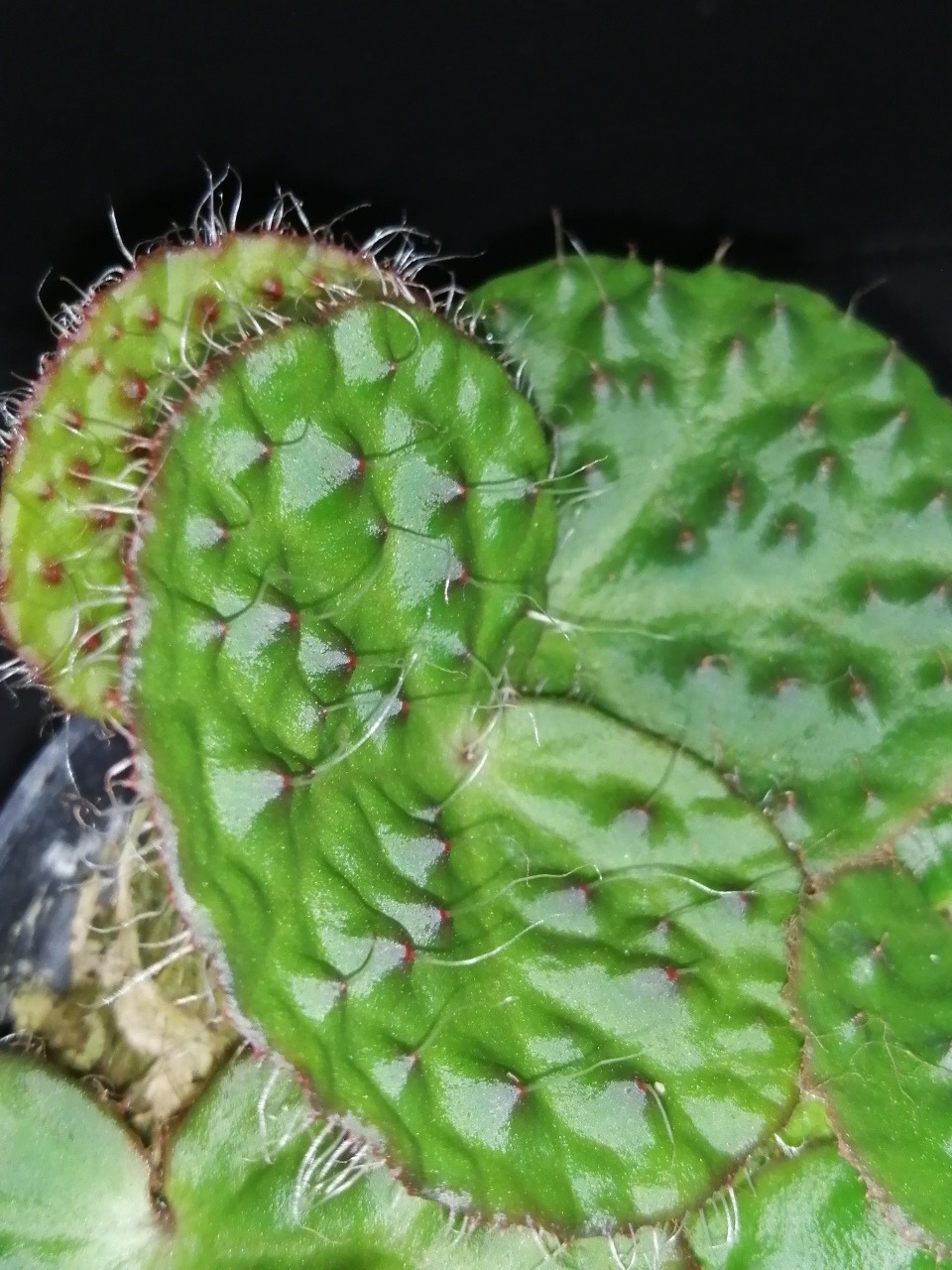 Begonia nahangensis è un piccolo gioiello, una specie originaria di un piccolo areale del Vietnam. E’ una begonia in miniatura che preferisce vivere nell’atmosfera calda e umida di un terrario, anche se con qualche accortezza può essere coltivata normalmente. Piccola, raggiunge appena i 10cm di altezza, cattura la nostra attenzione per le sue spettacolari foglie che ricordano un poco la B. ferox, ma in miniatura.