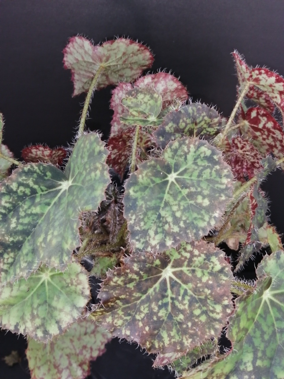 Piccola deliziosa begonia rizomatosa creata da Bedson nel 1962, incrociando la B. bowerae e la B. dedalea che conferisce alla nostra pianta l’aspetto ‘marmorizzato’ del ricamo sulla foglia.