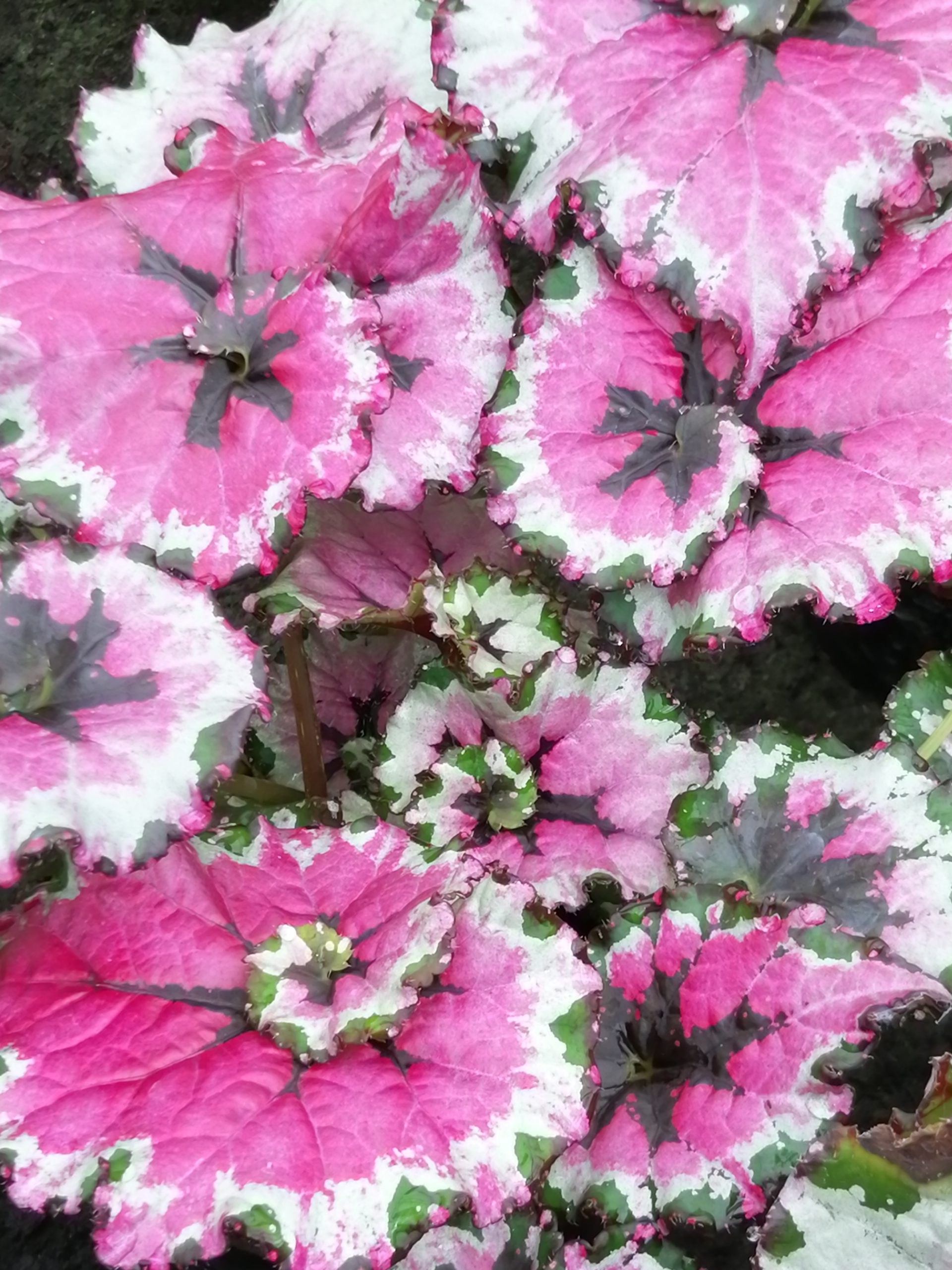 Begonia del tipo rex, a portamento compatto ed ordinato. Molto resistente e colorata adatta per ambienti interni luminosi e anche per l’esterno dove il clima lo permette.