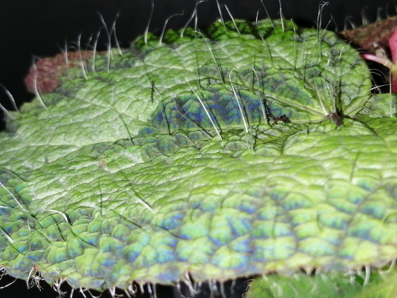 Le foglie sono soffici al tatto, grandi, verde vivo con macchie argentee in una vasta zonatura che segue il margine della foglia. L’intera superficie è ricoperta di radi peli soffici, lunghi circa 1-2cm eretti, sulla foglia. I fiori sono rosa, molto accattivanti, tra fine estate ed inverno, e contribuiscono a renderla davvero una pianta speciale, ricercata da tutti i collezionisti!