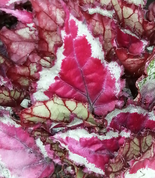 La begonia Spitfire è una Rex dalle splendide foglie coloratissime di rosa fucsia e argento. Portamento compatto.