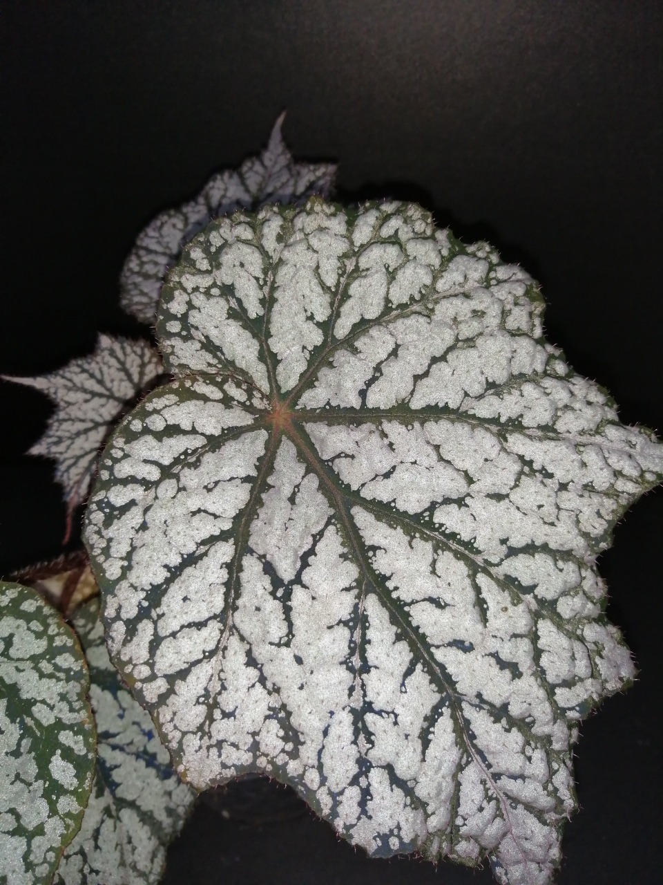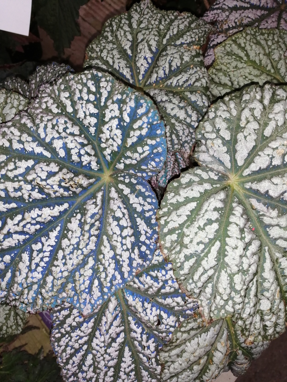 Una nuova serie di begonie è recentemente apparsa: si chiamano Lunar lights. Al momento ne abbiamo trovate tre varietà; affascinanti per le loro foglie grandi, oltre 25cm di diametro, vellutate, verde scurissimo quasi nero ma fittamente macchiate di bianco argento con pagina inferiore rosso mogano. Spiccata iridescenza. I fiori, grandi e alti oltre le foglie sono di un luminoso rosa puro. Se illuminate al buio le foglie riflettono la luce blu azzurra.