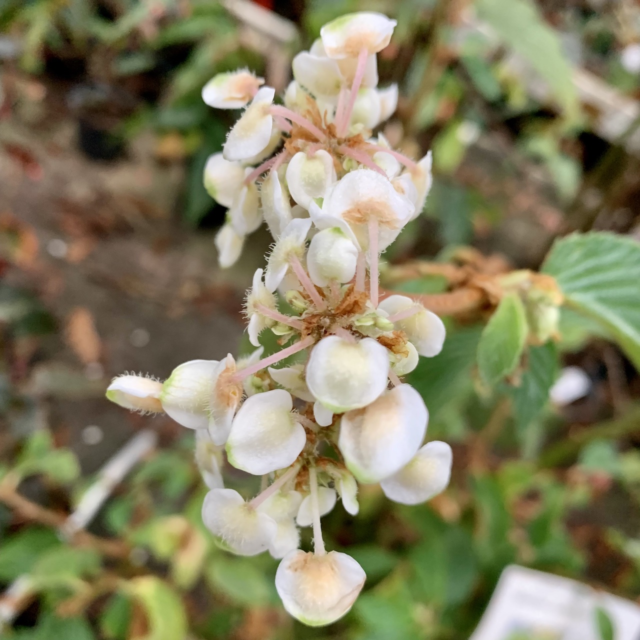 I fiori piccoli, sono raccolti in mazzi, e sono bianco puro. Comincia a fiorire alla fine dell’inverno.