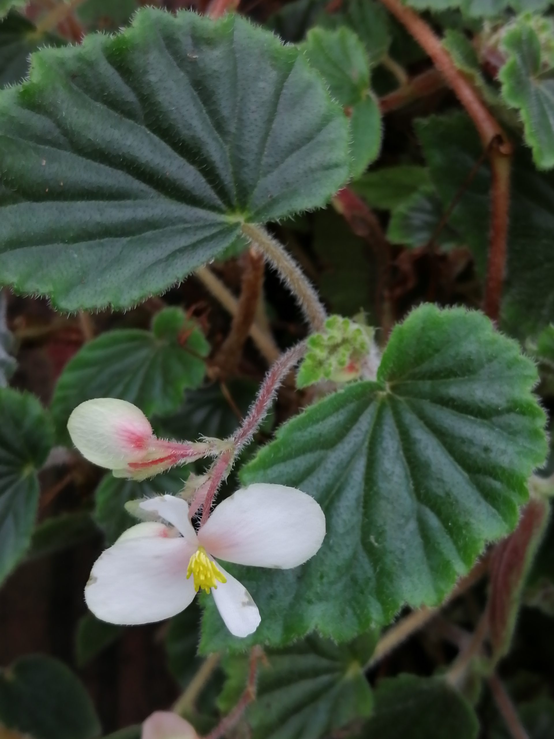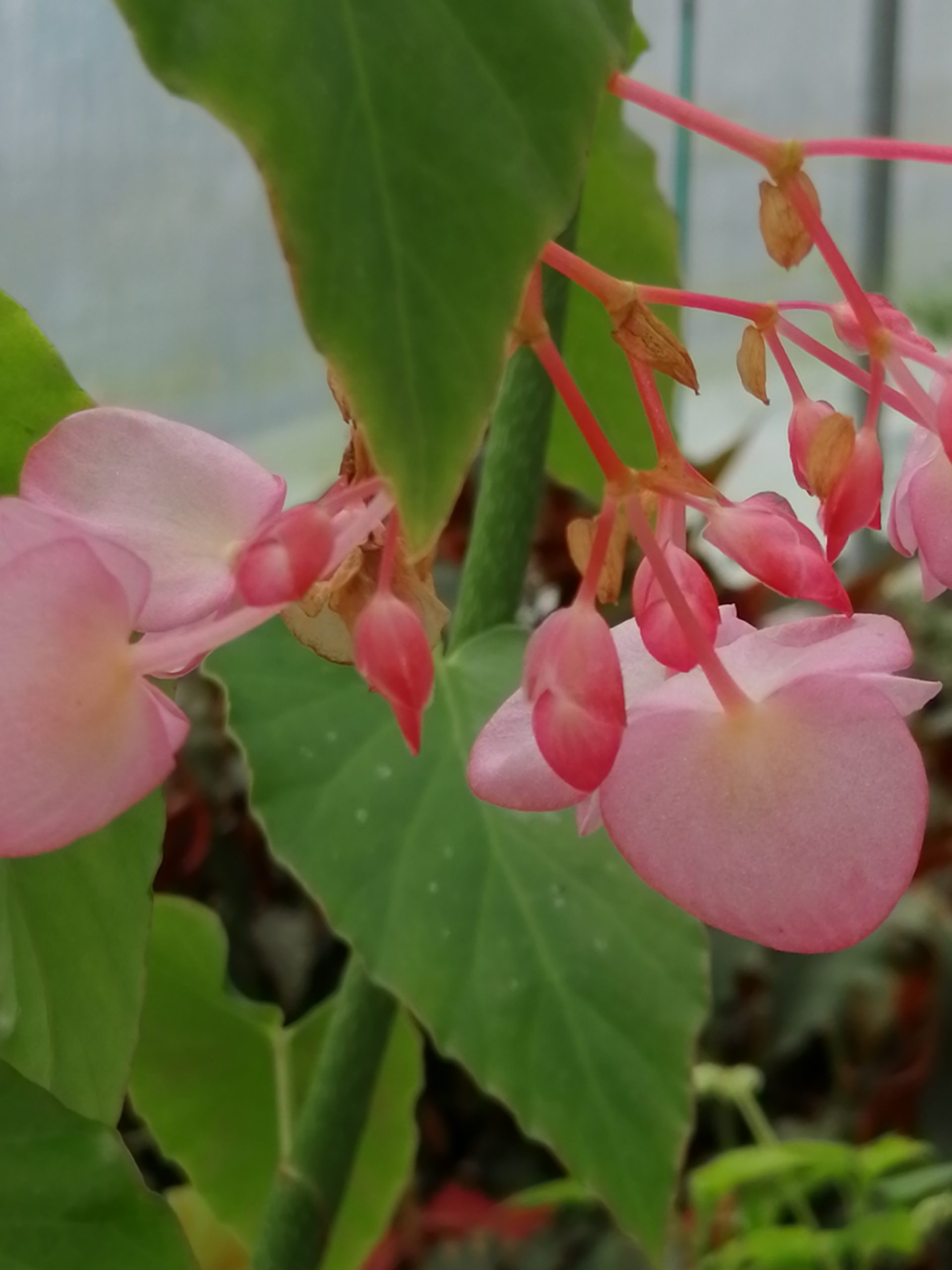 Piccola begonia bambusiforme a foglie verde scuro appena macchiate di argento. I fiori in piccoli mazzi, sono rosso arancio e sbocciano durante tutto l’anno.