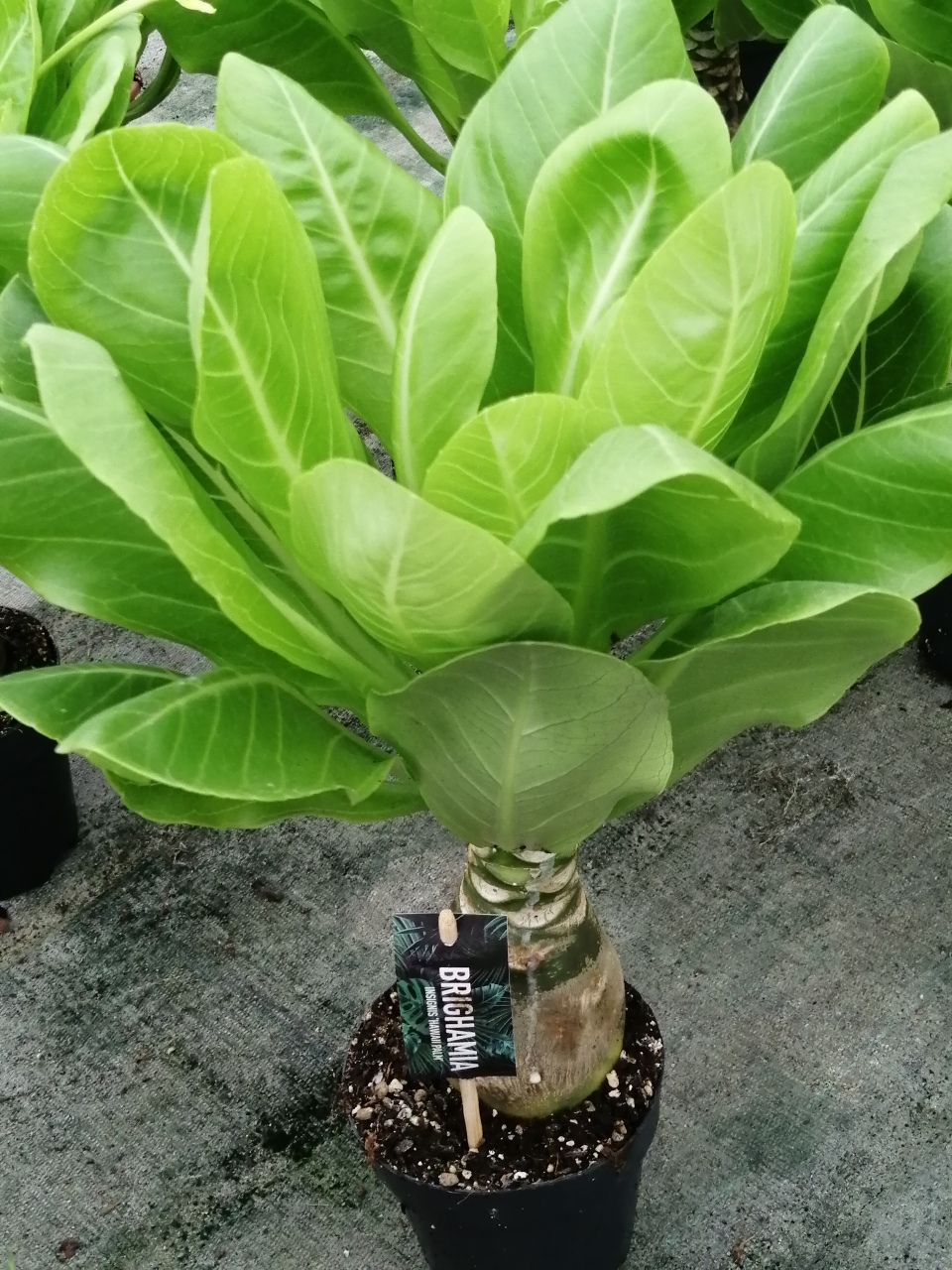 Brighamia insignis conosciuta come Palma delle Hawaii. Forma un fusto succulento e ingrossato. Le foglie grandi e carnose sono verde chiaro. I fiori autunnali sono giallo pastello.