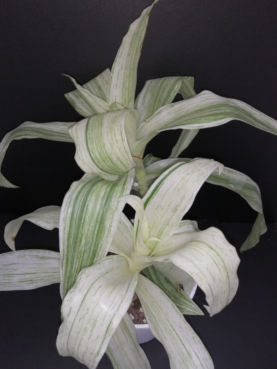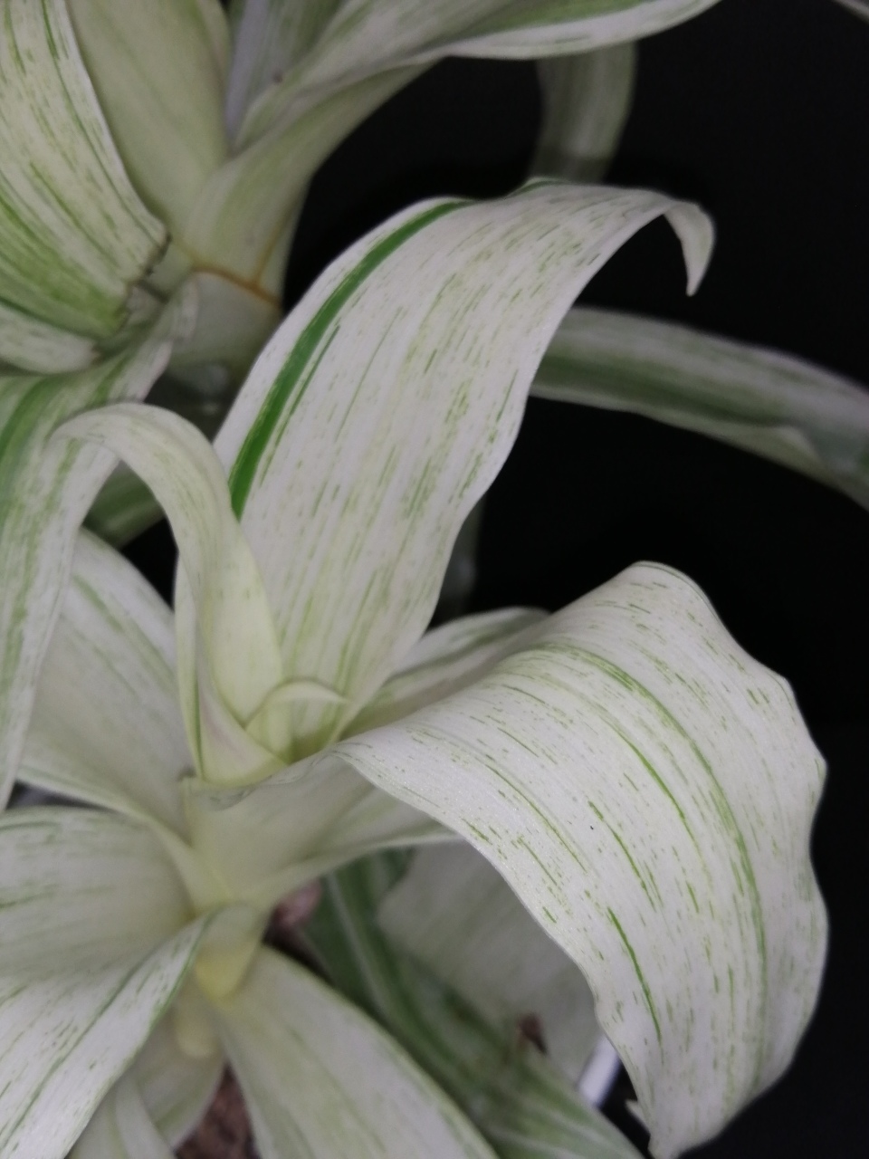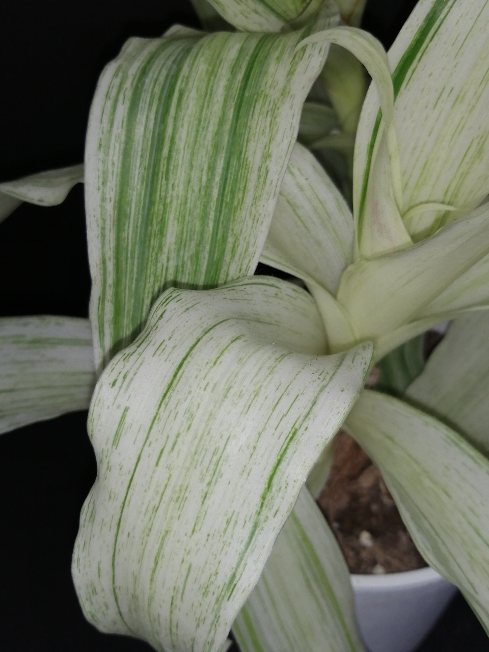 Callisia fragrans Variegata White. Questa selezione di Callisia ha una estrema variegatura bianca su sfondo verde chiaro.