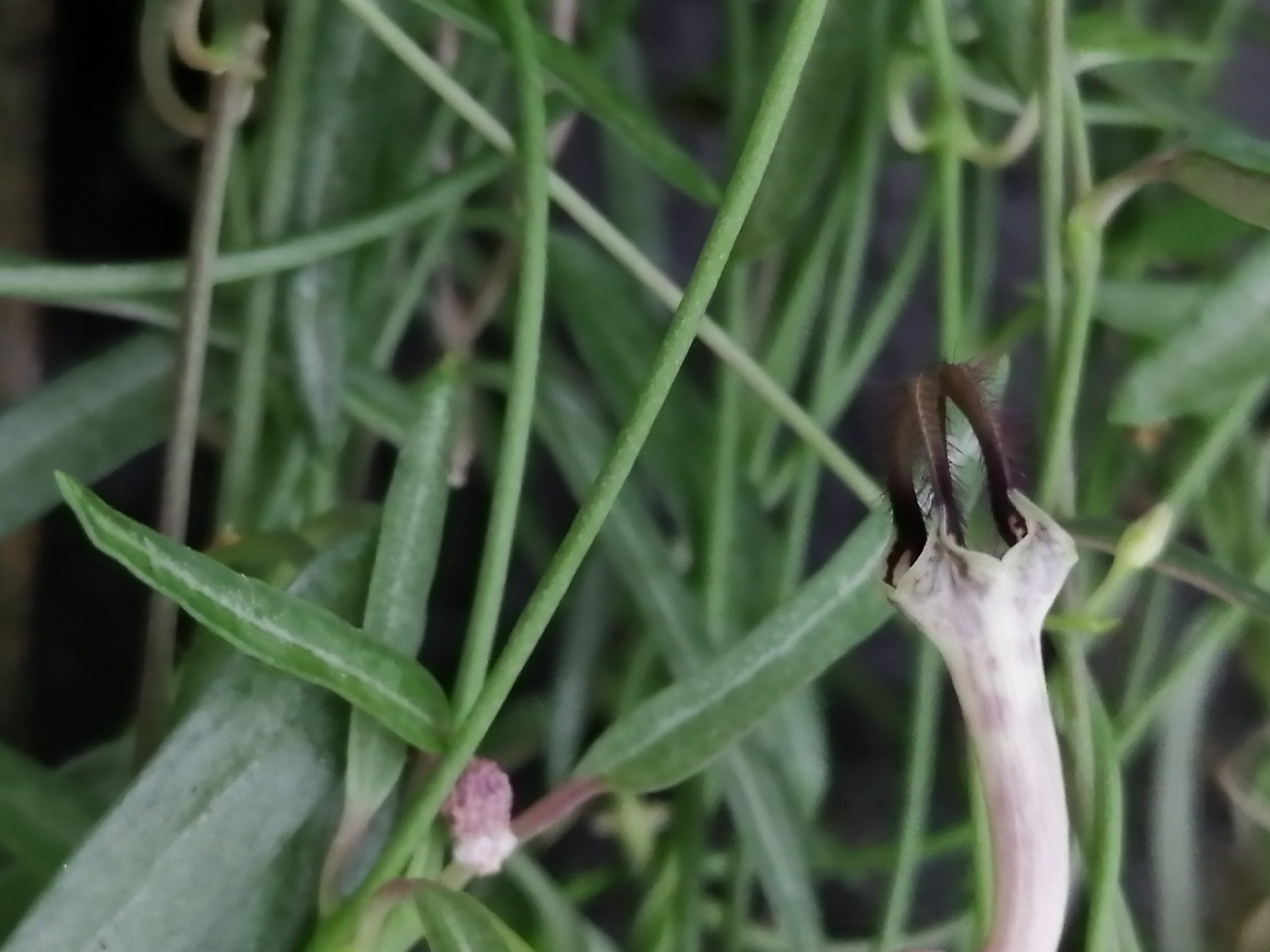 Ceropegia linearis subs. debilis : pianta rampicante o ricadente dalle foglie sottili ed allungate. Molto particolare anche il suo fiore. Tutta da scoprire.