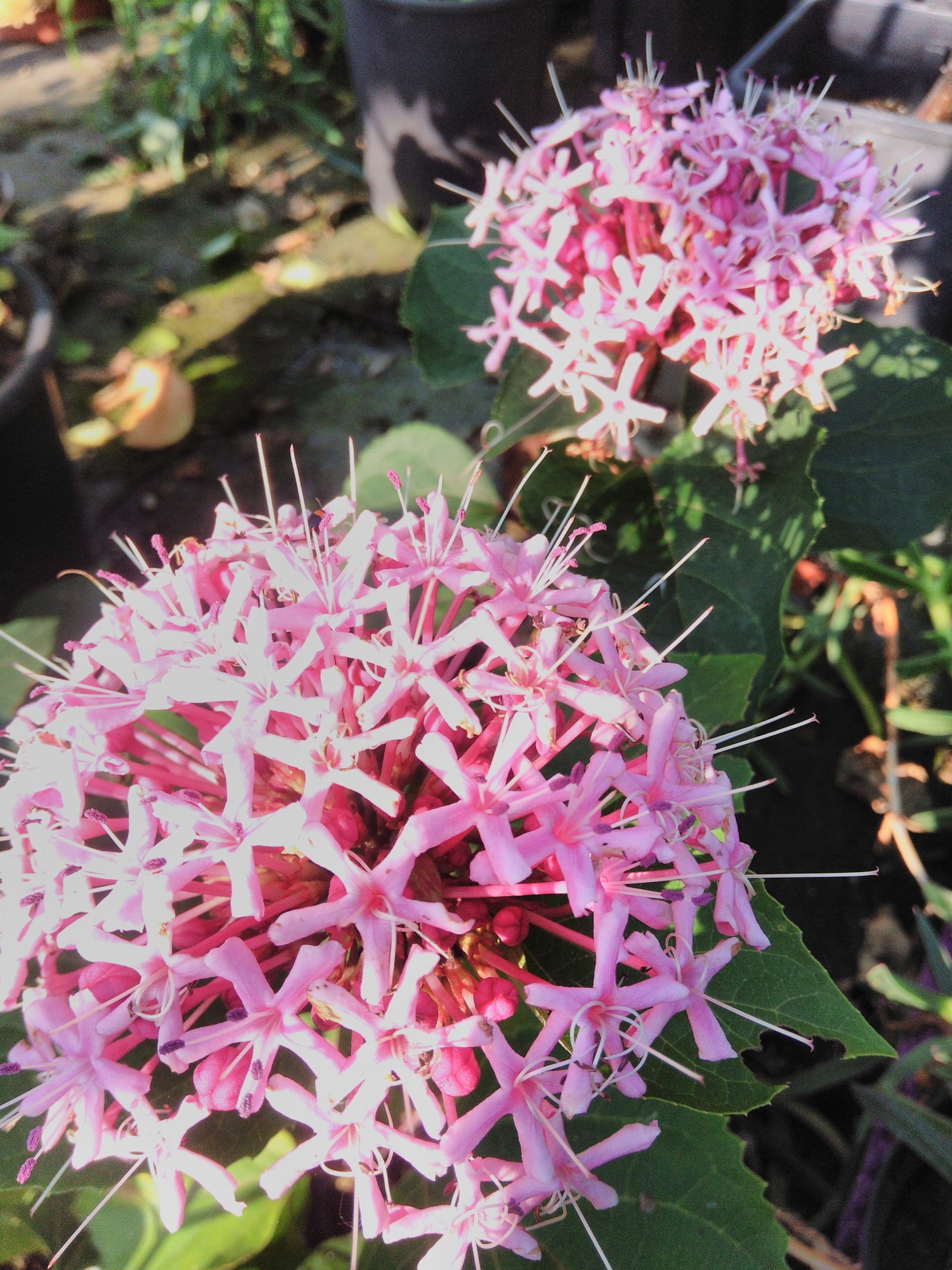 Piccolo arbusto con foglie grandi, a margini dentellati, verde scuro. Infiorescenze profumate, rosa intenso, in estate.