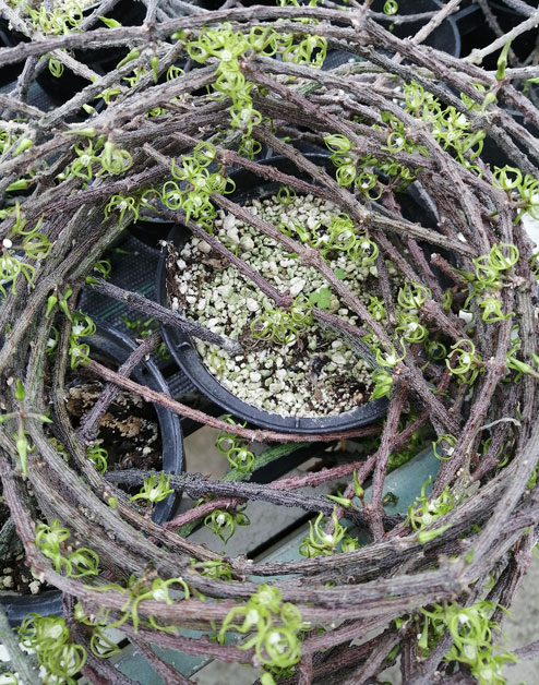 Ha un portamento espanso e strisciante con fusti succulenti che sembrano liane.