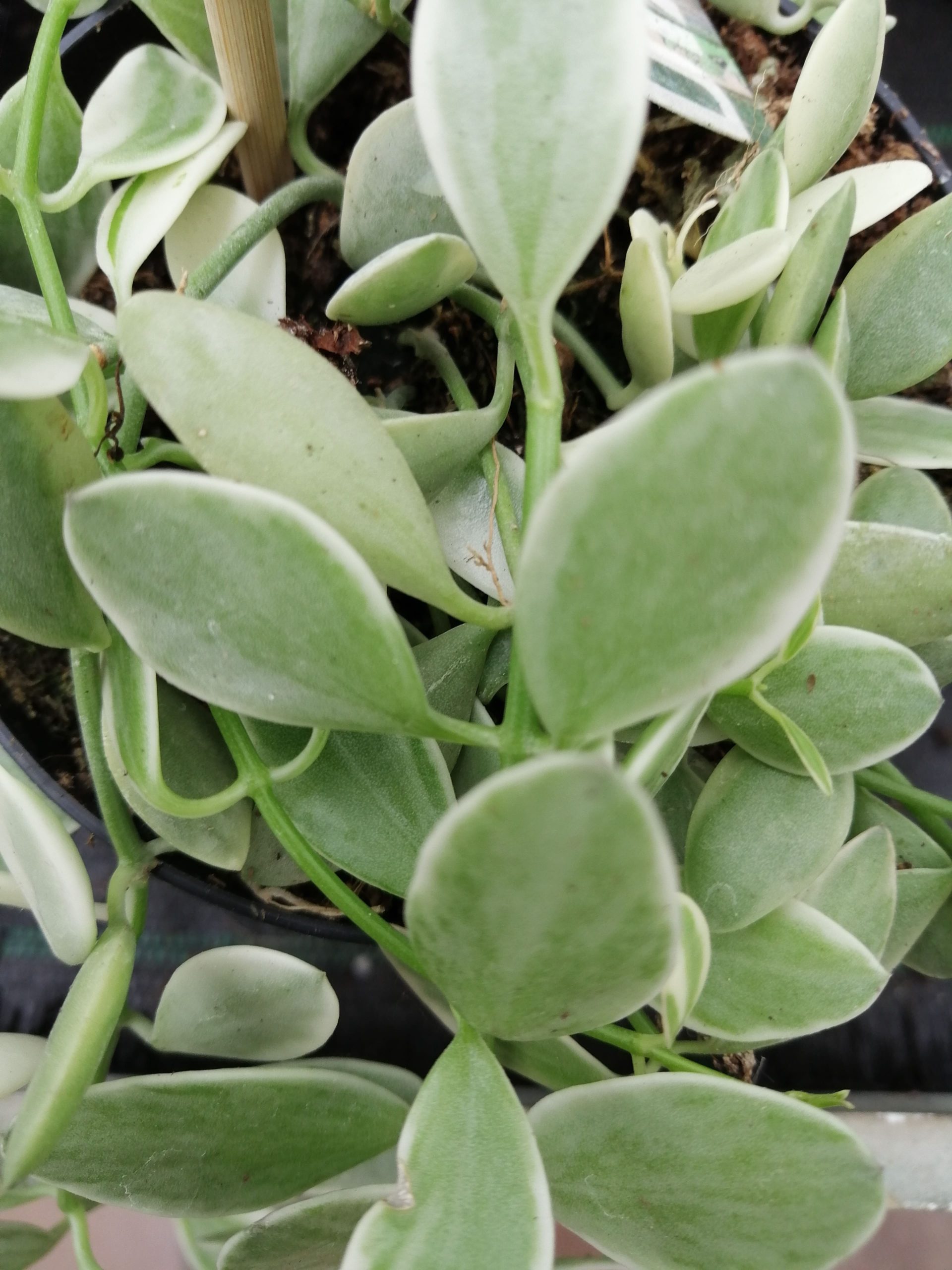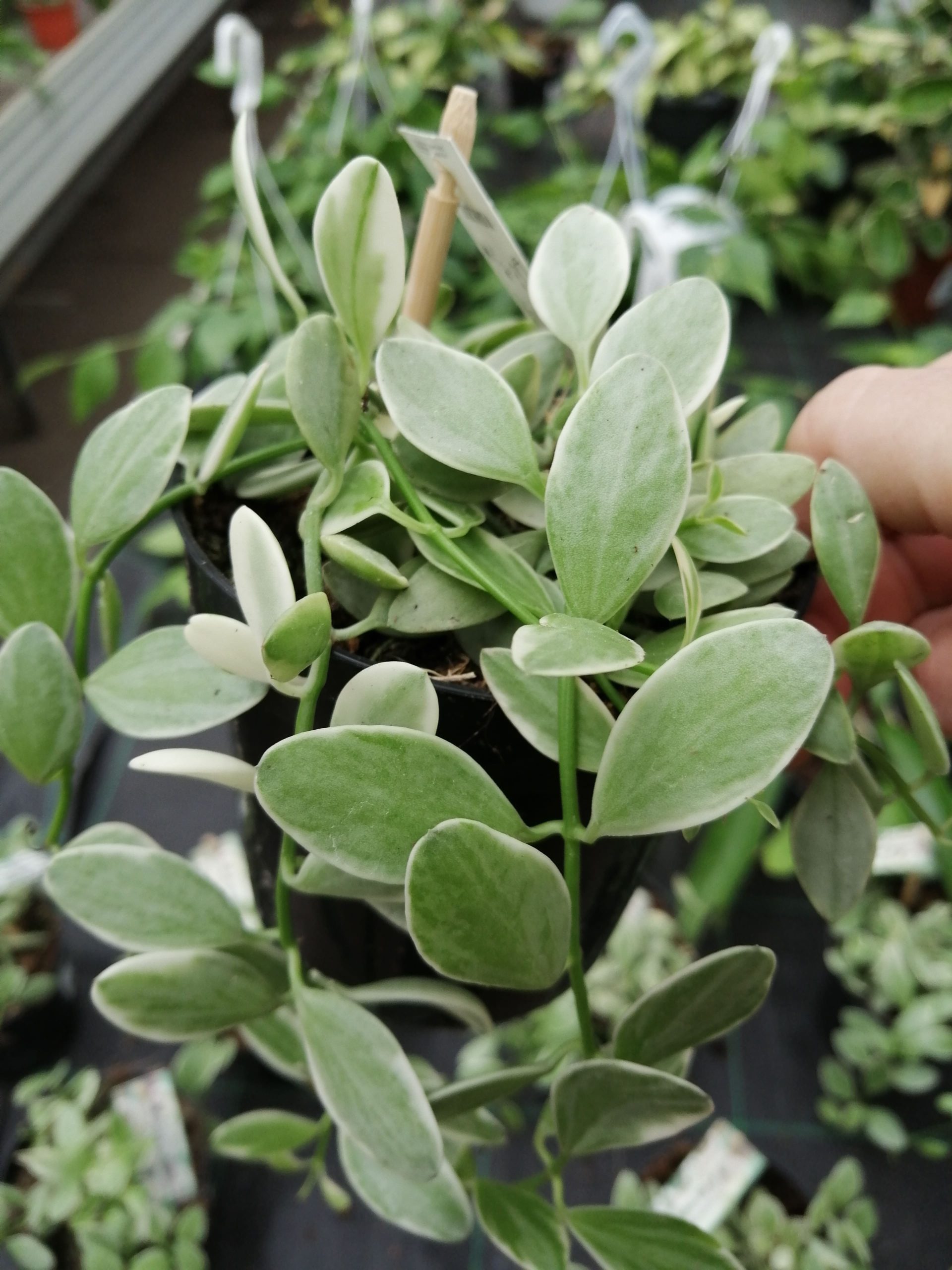 La Dischidia onanthe White Diamond è un piccolo gioiello per gli appassionati con le sue foglie carnose, fitte sugli steli delicati e penduli. Le foglie hanno un verde chiaro ed i margini sono bianco crema.