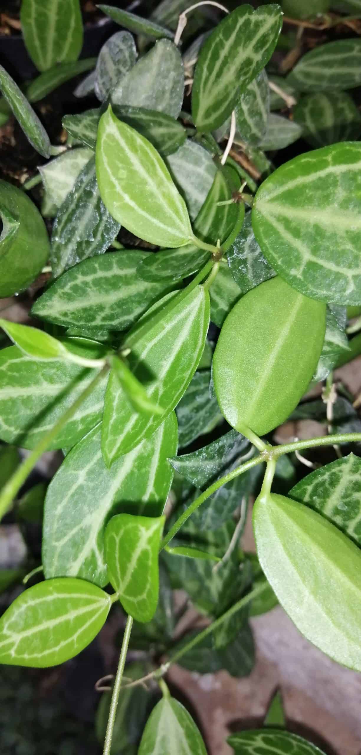 Sempre affascinanti queste ‘cugine ‘ delle forse più note Hoya. Eppure sono facili da coltivare ed hanno fogliami davvero superbi come questa Dischidia ovata. Deve il suo nome alla forma delle sue foglie, medie, ovali, verde scuro con rigature bianche, molto ornamentale.