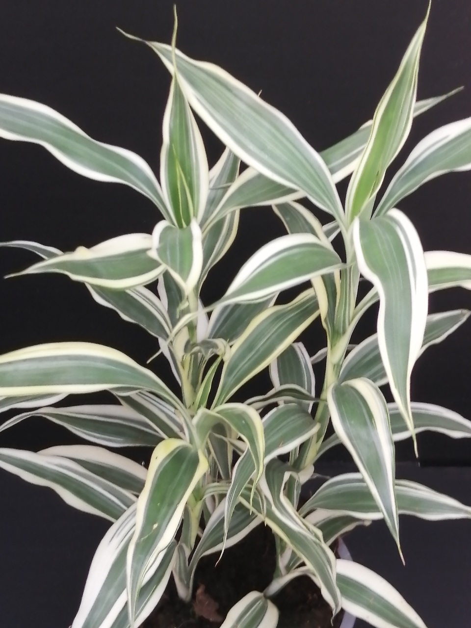 Decisamente interessante per il suo fogliame verde screziato di bianco crema e il suo portamento stretto ed allungato ideale per illuminare con la sua presenza anche un piccolo angolo della casa o d una scrivania.