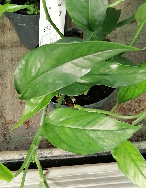 Epipremnum blue form, Epipremnum pinnatum, Il pothos blue form: sono tutti nomi con cui è conosciuta questa nuova selezione a portamento ricadente. Le giovani foglie sono verde scuro allungate e maturando tendono ad aprirsi, come nelle monstera.