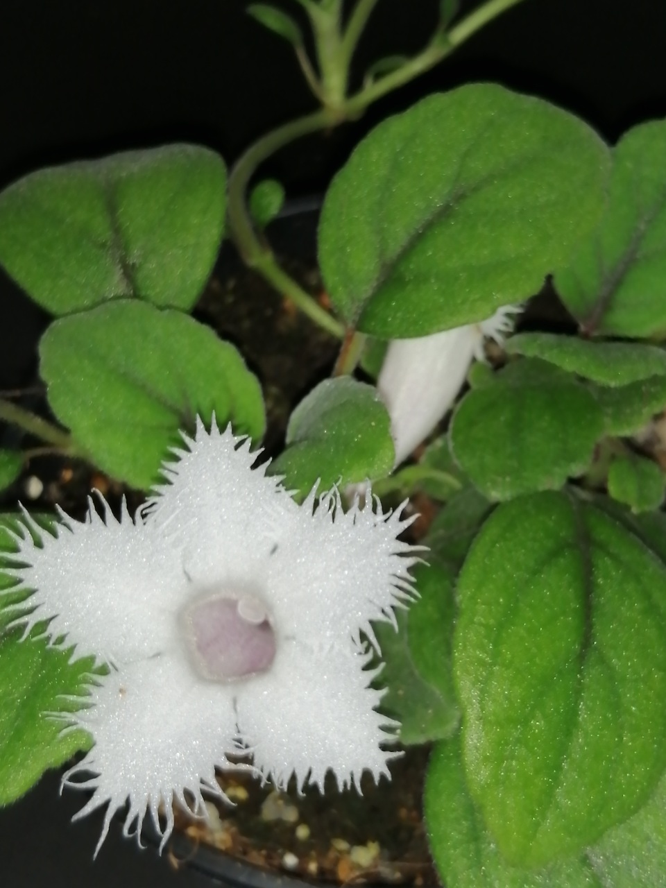 Bella varietà di Episcia a portamento ricadente, ottima per vasi sospesi. Le foglie sono piccole, vellutate, verde intenso. I fiori sono grandi, candidi, con i margini finemente seghettati. La fioritura dura tutta l’estate.