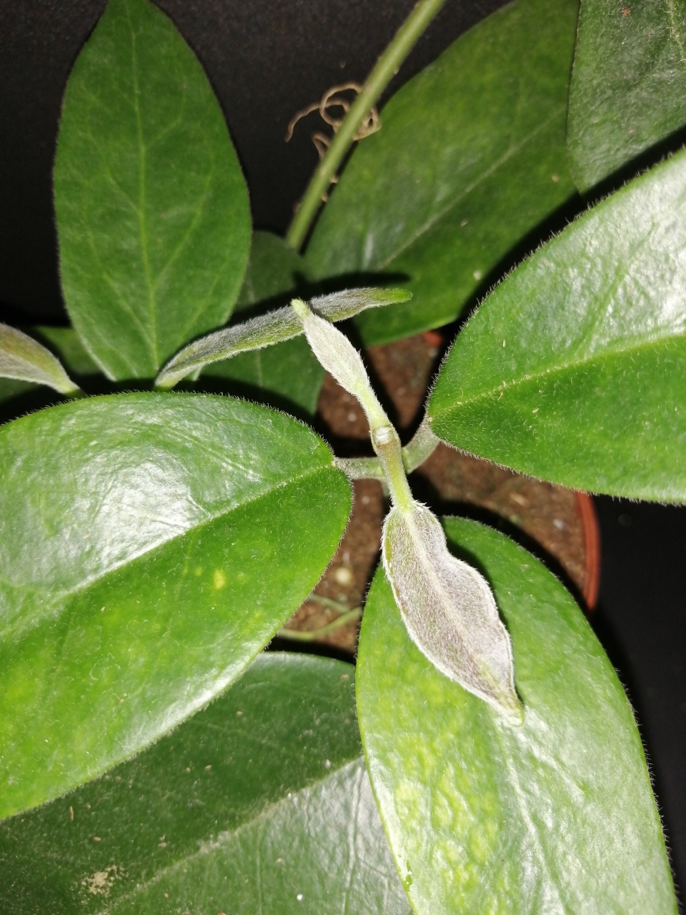 Originaria di Papua e Nuova Guinea. Le foglie grandi, carnose, verde scuro. I  fiori sono bianco puro, cerosi e profumati.