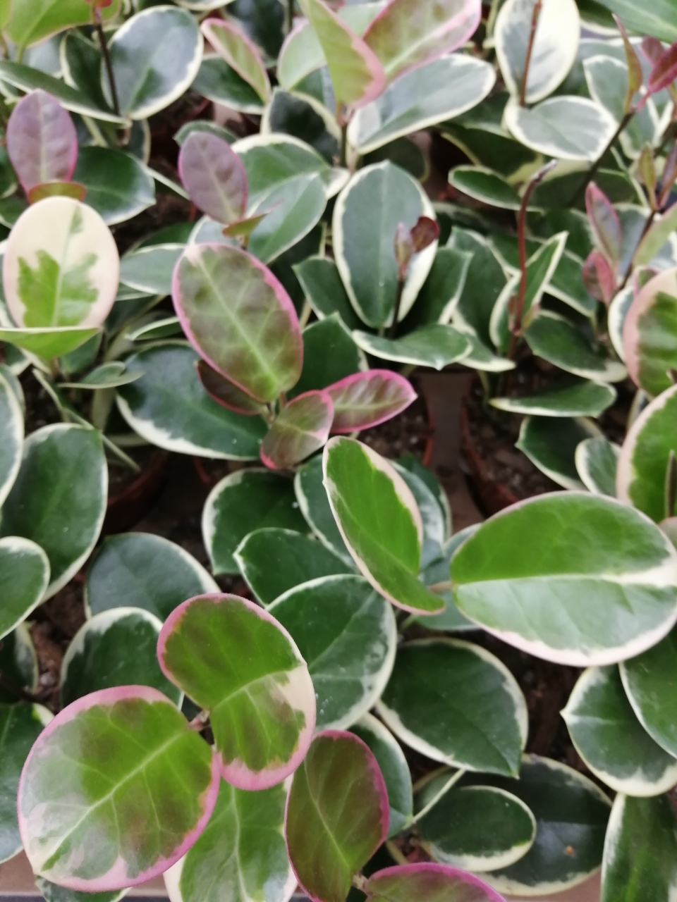 Volubile forma splendidi esemplari per vasi pensili o con supporto di una griglia. Ha foglie davvero molto grandi, carnose, verde scuro marginate di rosa e crema.  Crescita molto forte nei mesi estivi.