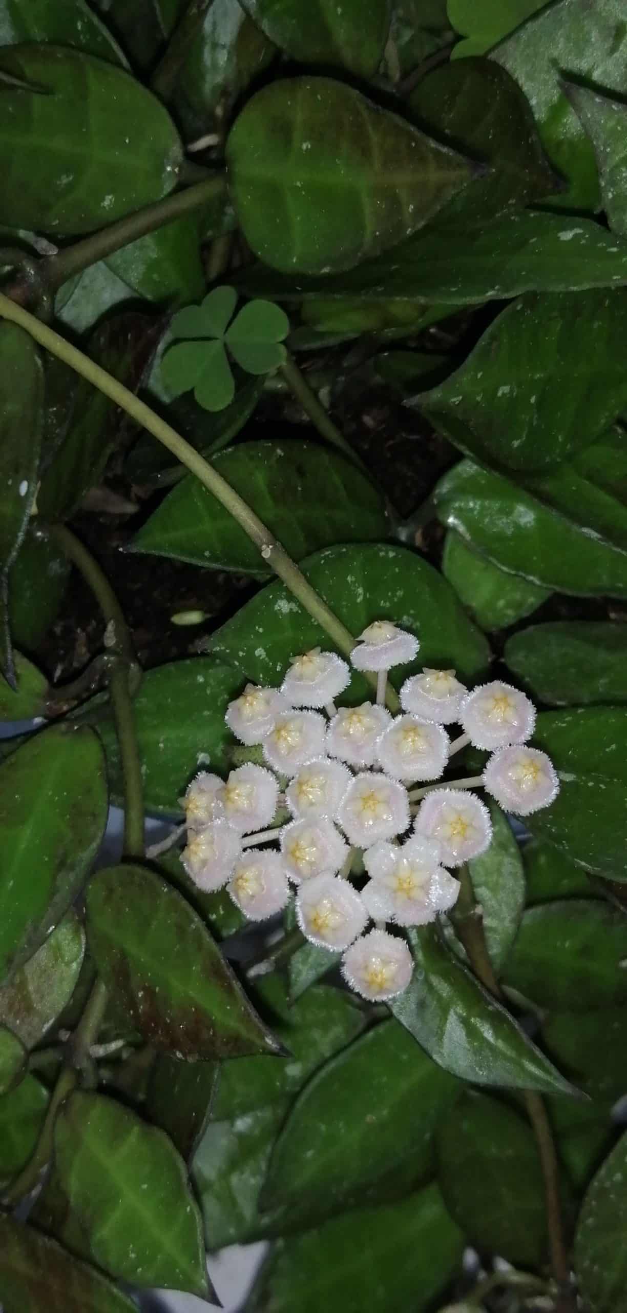 Hoya originaria delle Filippine, conosciuta anche come Heart leafed lacunosa, dai fiori bianchi con cuore giallo, dolcemente profumati e piccole foglie dalla caratteristica forma a cuore.