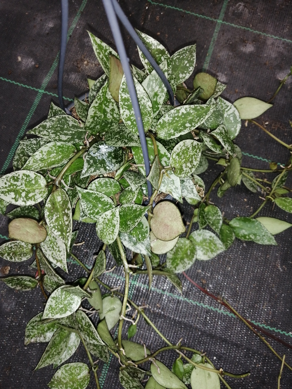 Rara Hoya a fiore bianco profumatissimo. Foglie marezzate di bianco crema.