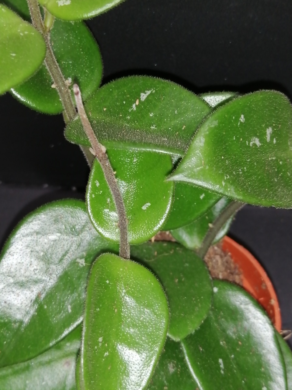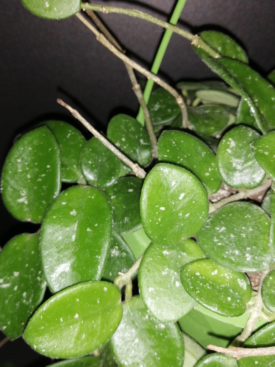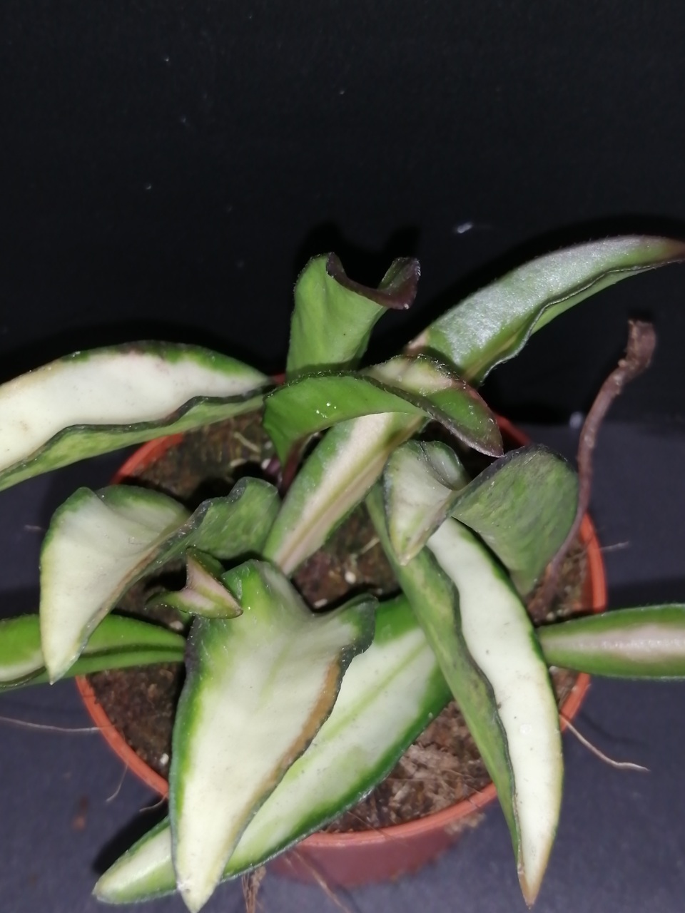 Hoya Mathilde . Deliziosa questa cultivar di Hoya carnosa var.carnosa x Hoya serpens. Ha un bel portamento ricadente e compatto, ordinato, foglie carnose verde scuro macchiettate di bianco. I fiori sono stellati rosa chiarissimo ed hanno dolce profumo.
