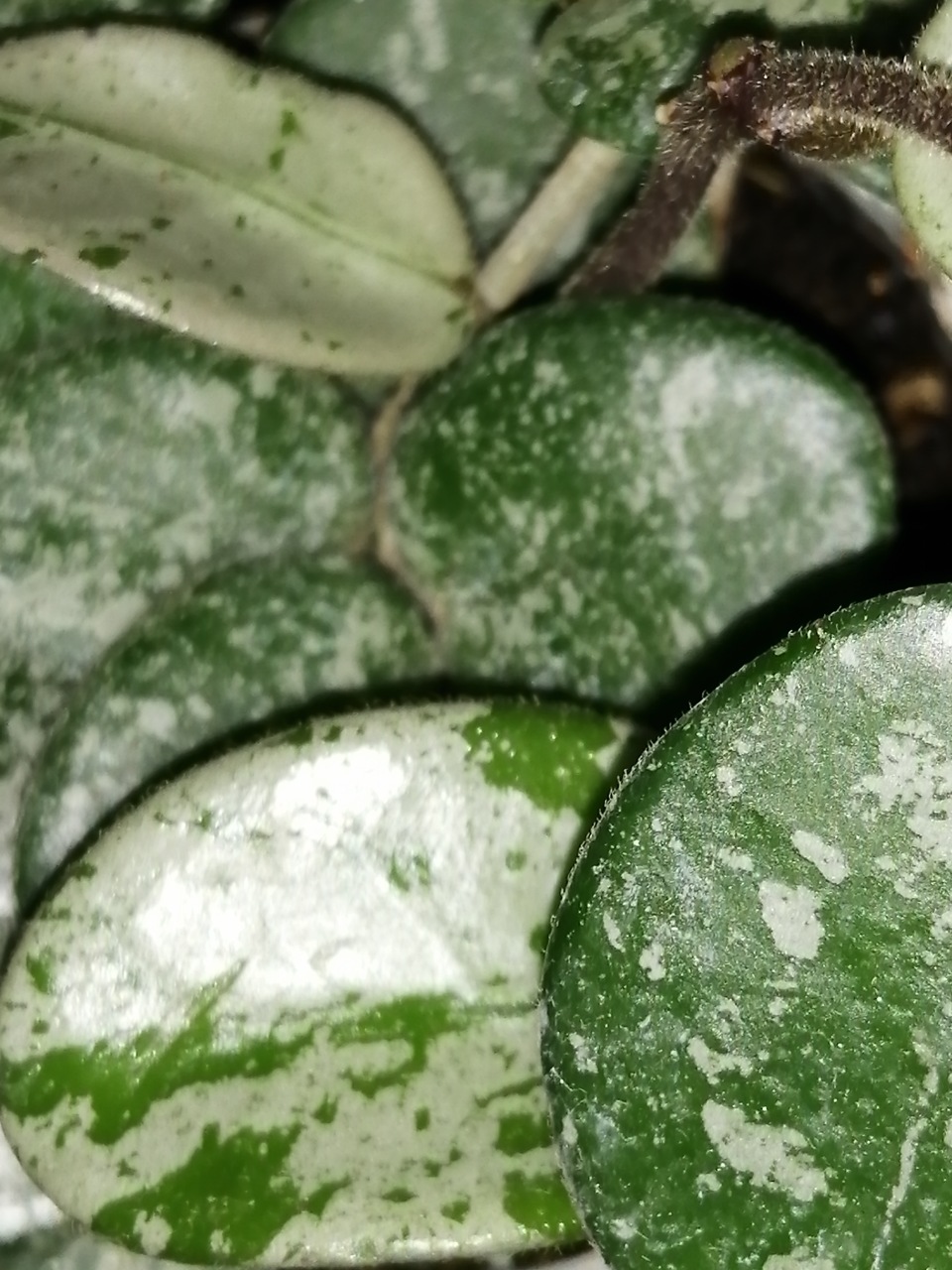 Deliziosa questa cultivar di Hoya carnosa var.carnosa x Hoya serpens. Ha un bel portamento ricadente e compatto, ordinato, foglie carnose verde scuro macchiettate di bianco. I fiori sono stellati rosa chiarissimo ed hanno dolce profumo.