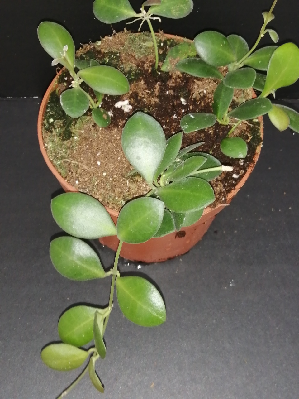 Originaria delle Filippine, affine alla Hoya bilobata. Le foglie medio piccole, carnose, verde scuro. I  fiori sono bianco rosati cerosi e profumati.