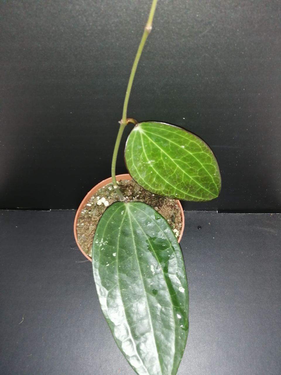 Spettacolare Hoya dalle foglie molto grandi ed ornamentali, carnose, verde scuro I  fiori sono bianco rosati cerosi e profumati.