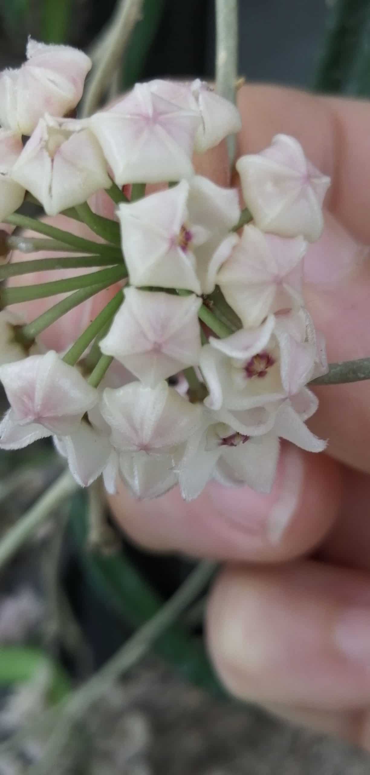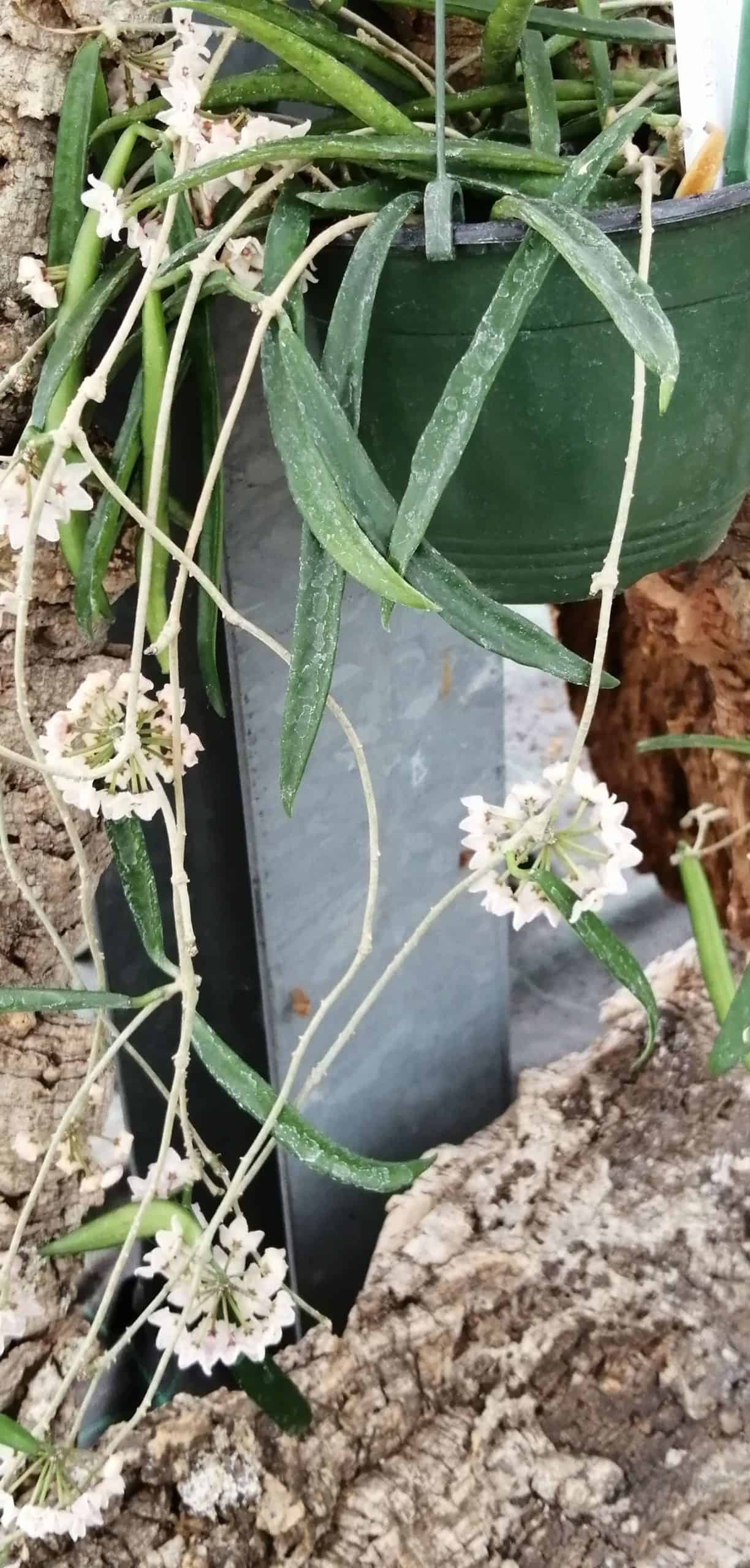 Interessante specie, dal fogliame allungato, carnoso, verde intenso. I fiori cerosi e profumati sbocciano in estate e sono bianco rosati.