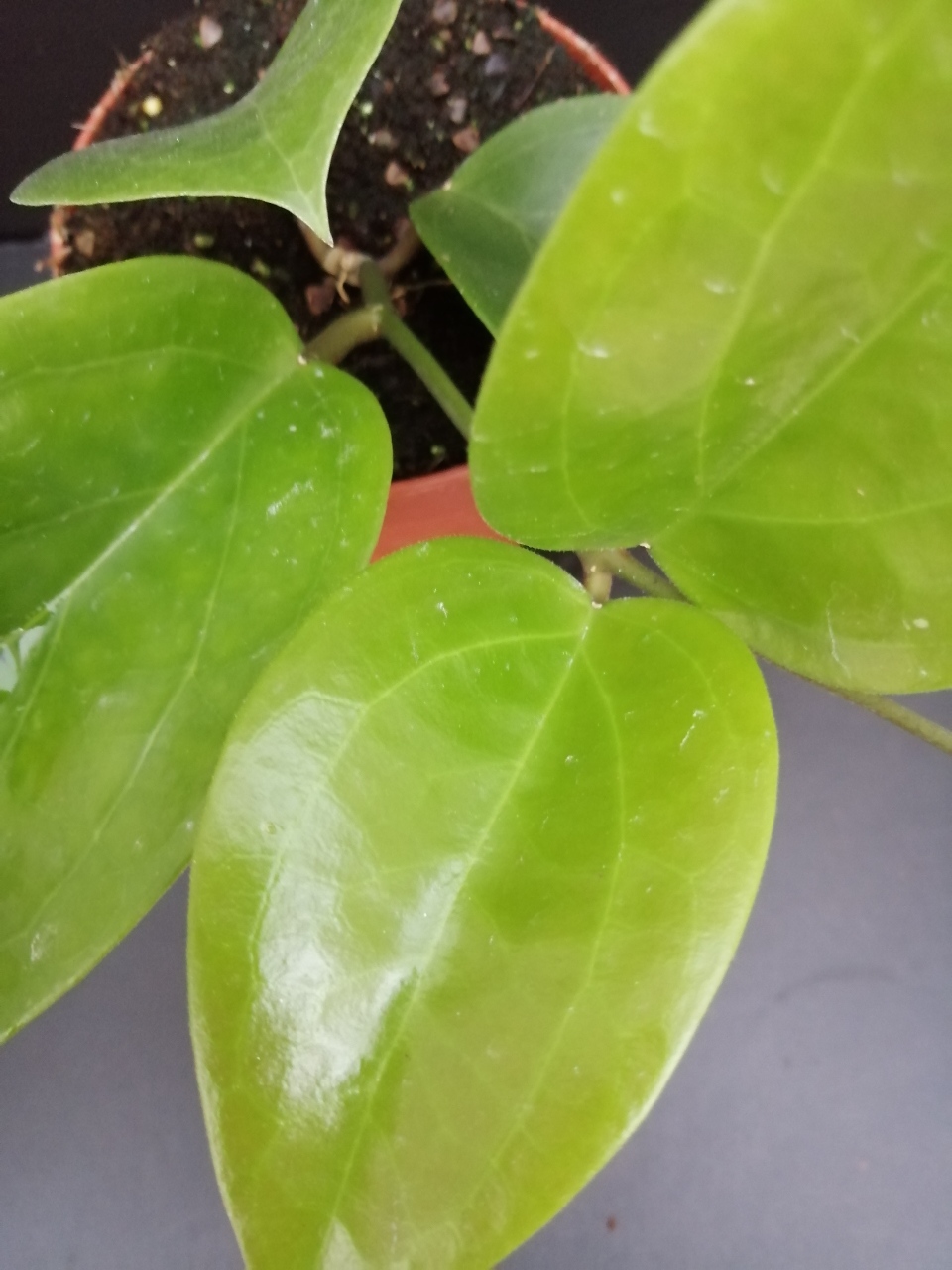 Origine Filippine. Foglie medio grandi, verde intenso lucide e ciuffi di fiori cerosi giallo pallido.