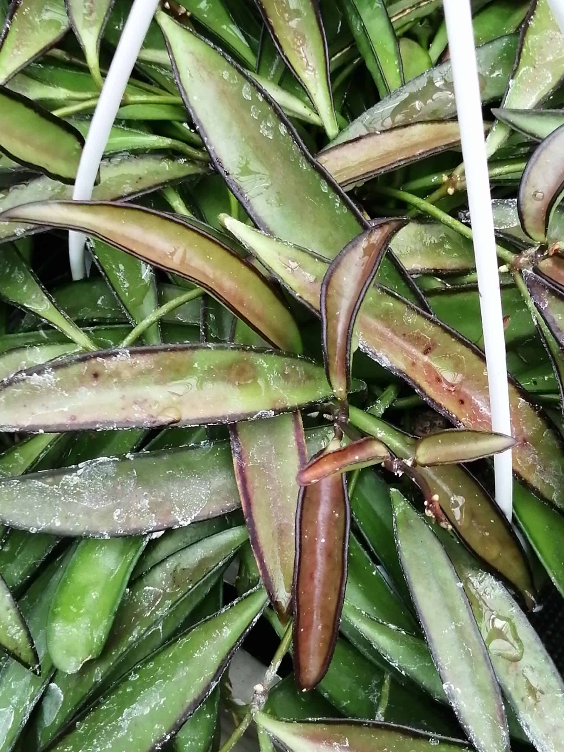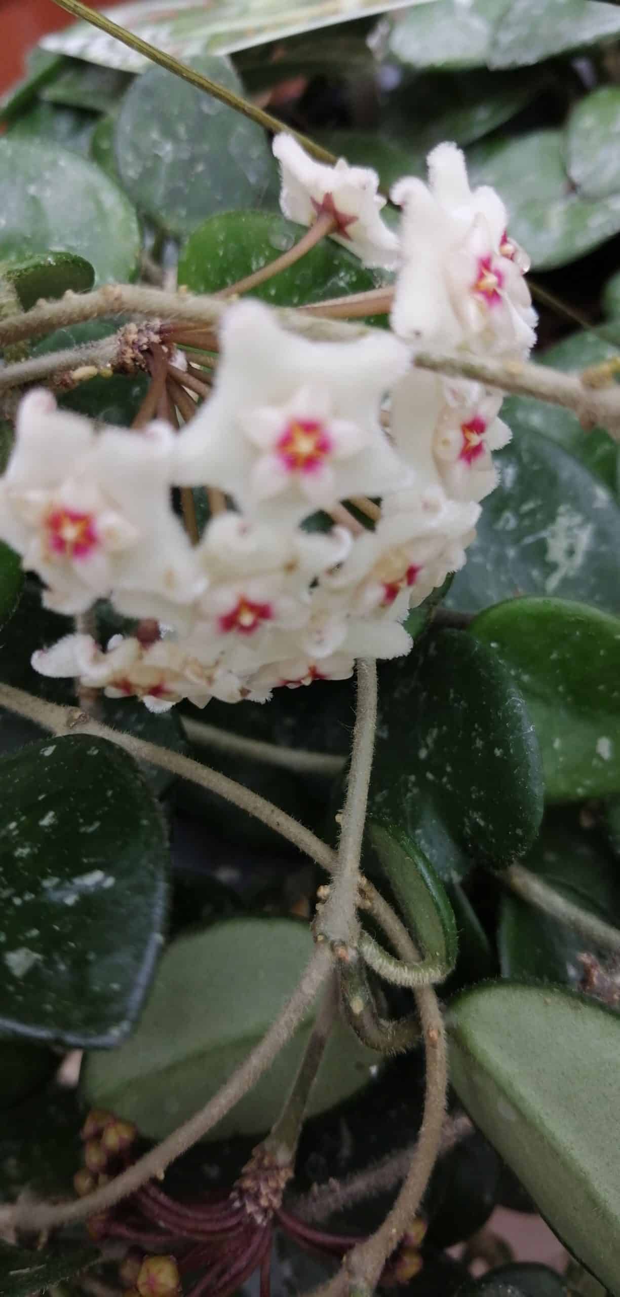 Ha belle foglie, lineari, strette e carnose, verde scuro con margini marroncino, lunghe anche 7cm. I fiori sono piccoli raccolti in mazzetti rosso rosati, profumati.