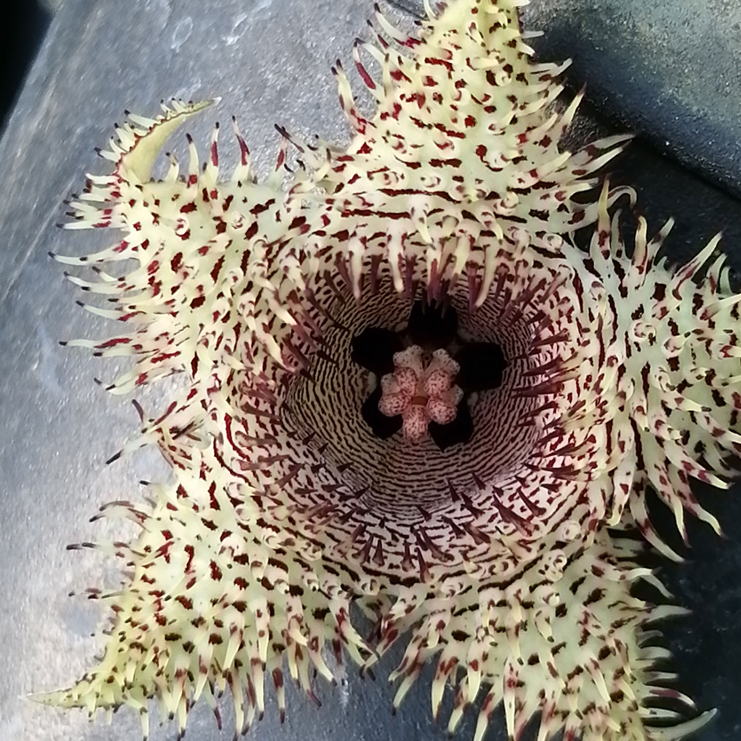 Acquista e guadagna 9 punti!Huernia hystrix è una Apocynacea sud africana dai particolarissimi fiori a stella che sembrano coperti di spinette.