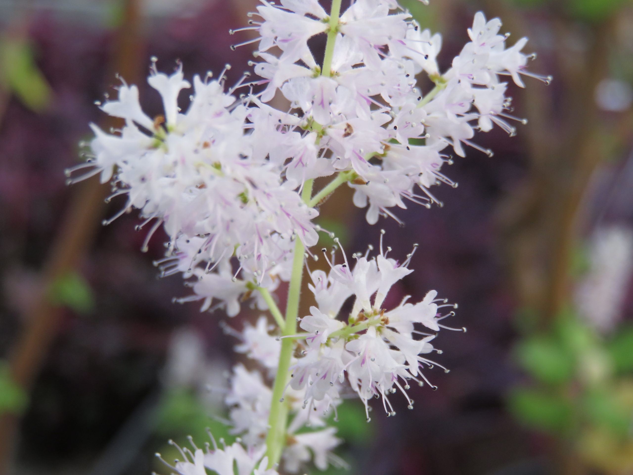Pianta interessante a rapido sviluppo. Forma un bell’arbusto che lignifica alla base. Le foglie hanno un profumo molto intenso, specie alla sera. Ha foglie verde oliva con margini dentellati e produce a fine estate corte e numerose spighe di fiori color lilla delicato. Nel paese d’origine -Africa-, è considerata una pianta medicinale e sacra.